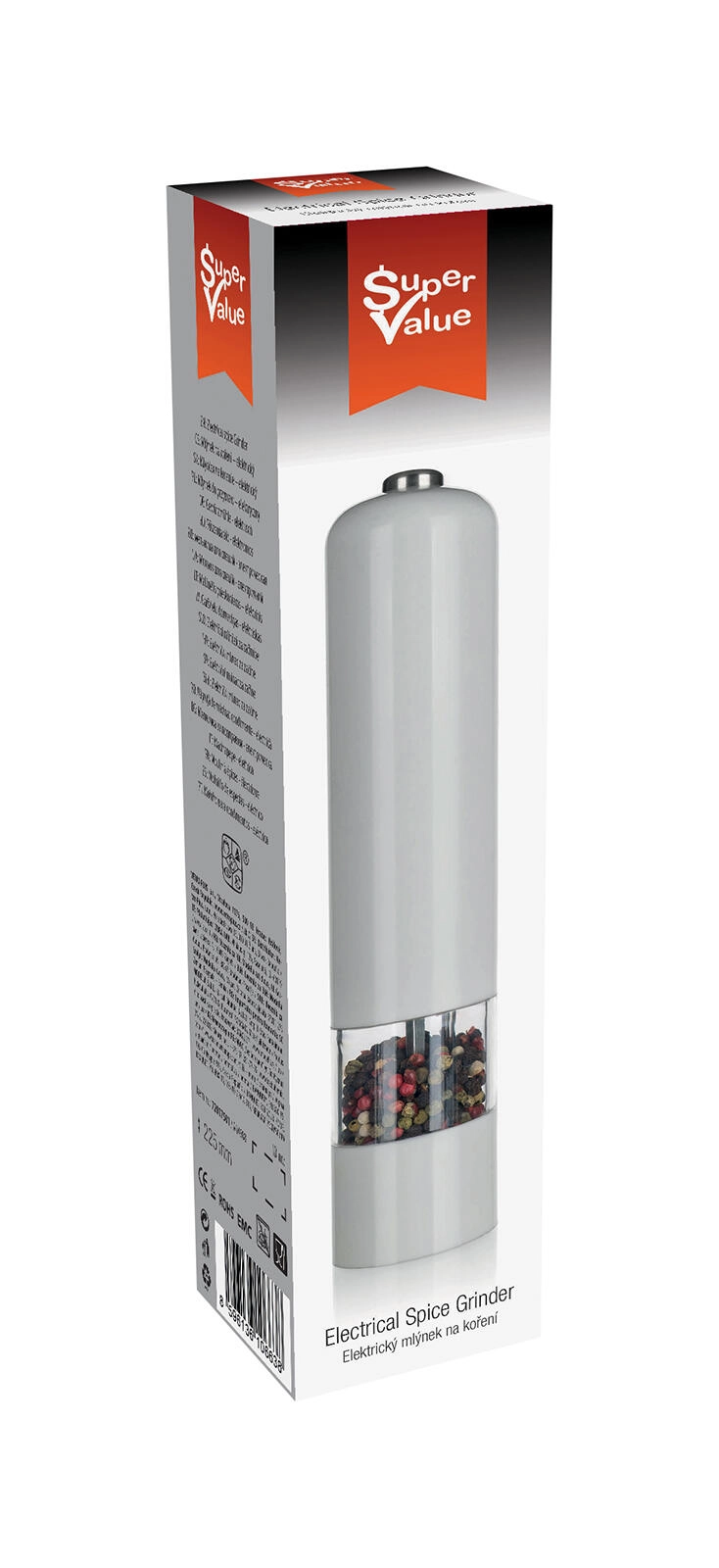 De elektrische kruidenmolen SUPER VALUE is een praktische hulp in elke keuken en op elke eettafel. Het minimalistische design met transparant middendeel past in een modern interieur, terwijl het keramische maalmechanisme moeiteloos peper, zout en andere kruiden maalt zonder ongewenste slijtage.