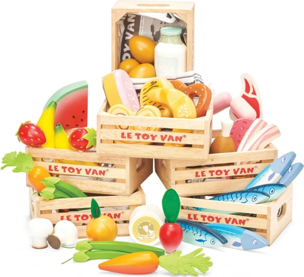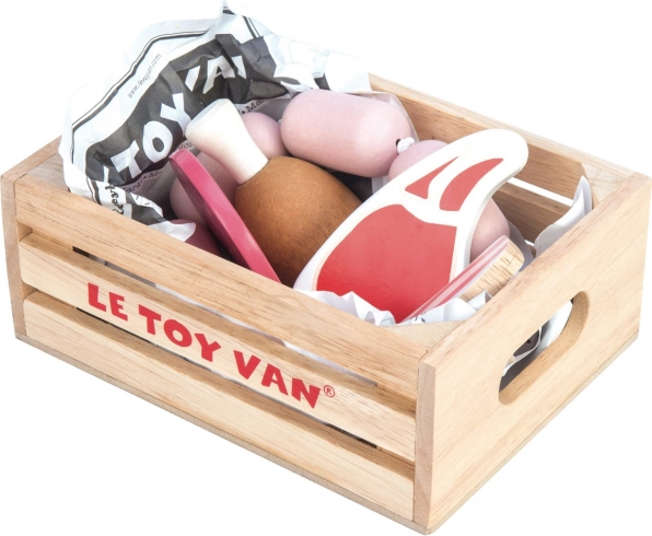 De houten krat met vleeswaren van Le Toy Van biedt de perfecte manier om kinderen te leren over verschillende voedingsmiddelen en het belang van een uitgebalanceerd dieet. Bevat: