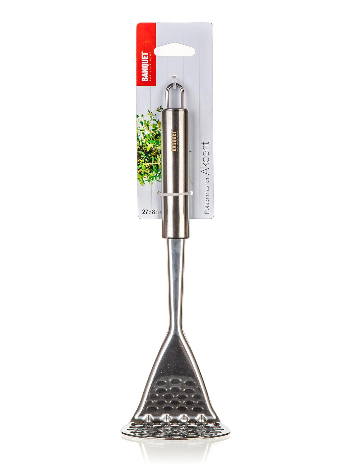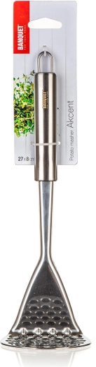 De AKCENT aardappelstamper van roestvast staal is een betrouwbare hulp bij het bereiden van smeuïge aardappelpuree en andere bijgerechten. Het duurzame materiaal zorgt voor een lange levensduur en het eenvoudige, functionele ontwerp past in elke keuken.