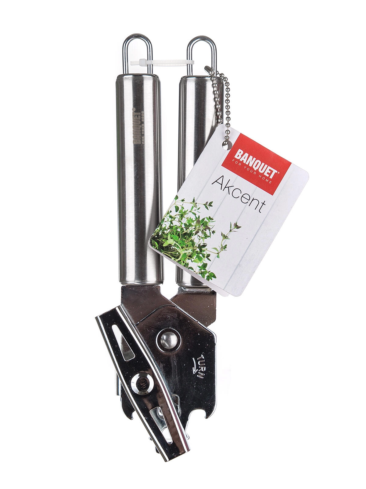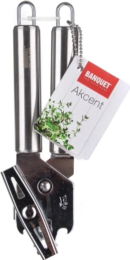 Praktische AKCENT-blikopener met klassiek vleugelmechanisme voor snel en comfortabel openen. Gemaakt van hoogwaardig roestvrij staal, biedt lange levensduur en is dankzij het ophangoog altijd binnen handbereik. Geschikt voor professioneel en huishoudelijk gebruik.