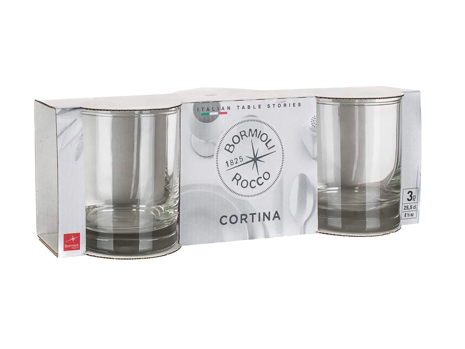 Universele glazen CORTINA met een inhoud van 255 ml zijn ideaal voor het dagelijks serveren van water, sappen en mixed drinks. Het heldere glas, de prettige vorm en de praktische verpakking van 3 stuks passen in elk huishouden.