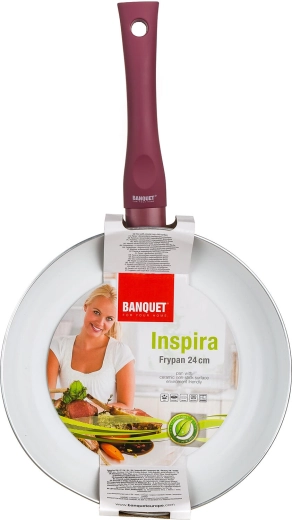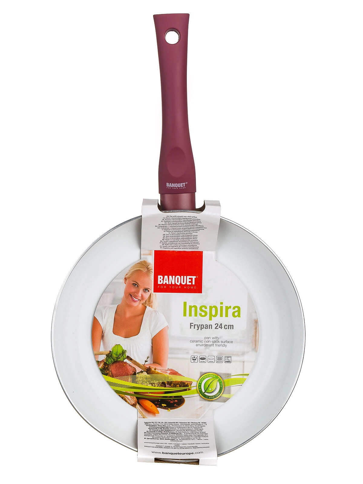 Ontdek de veelzijdige INSPIRA-pan met een diameter van 24 cm, voorzien van een duurzame keramische antiaanbaklaag en een comfortabele soft-touch handgreep in een elegante paarse kleur. Biedt snelle en gelijkmatige verwarming, is onderhoudsvriendelijk en geschikt voor elektrisch, gas, keramisch en inductie.