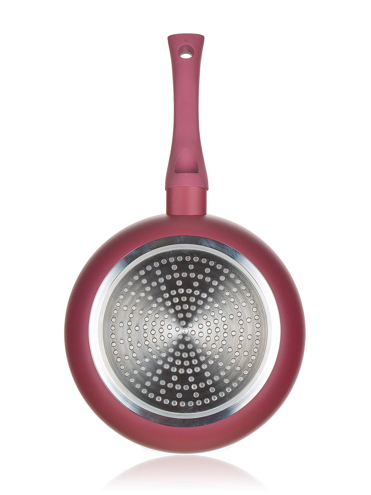 De ergonomische soft-touch handgreep ligt prettig in de hand en past bij het paarse pannelichaam. De pan is compatibel met de meeste kookplaten, inclusief inductie, en kan in de vaatwasser, waardoor het onderhoud in een handomdraai is gedaan.