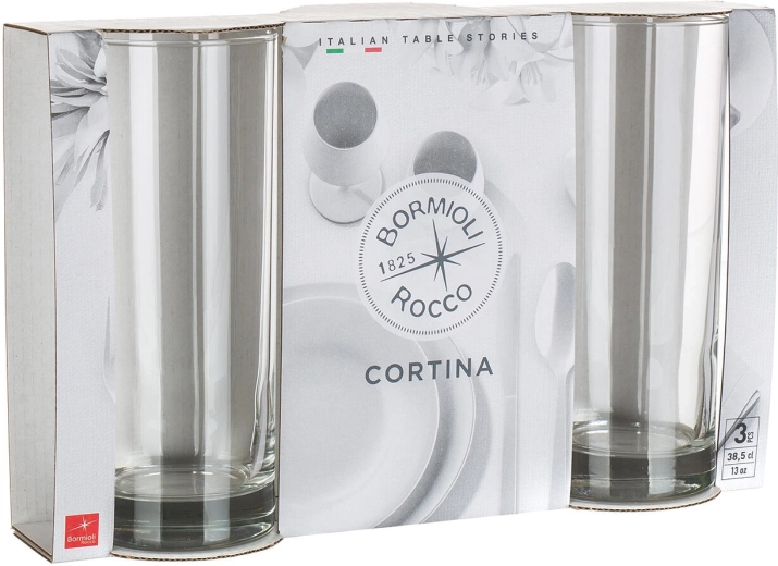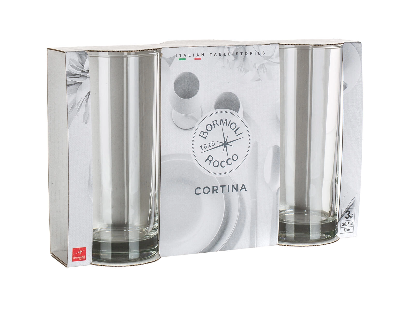 Elegante en duurzame CORTINA 385 ml glazen in een praktische set van 3 zijn ideaal voor het serveren van water, limonades en longdrinks. Dankzij het heldere glas, de uitgebalanceerde proporties en de universele vorm passen ze in elk huishouden en op elke feestelijke tafel.