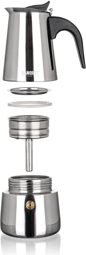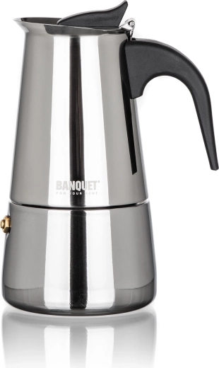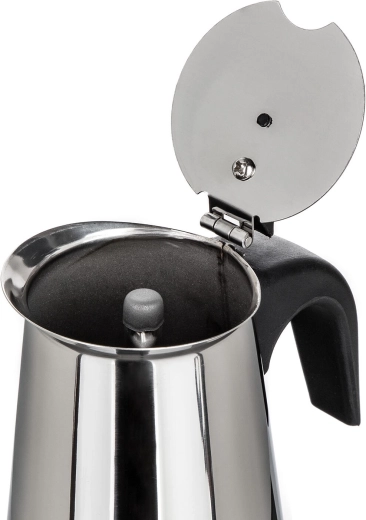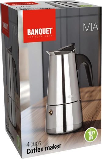 De MIA mokapot combineert de klassieke Italiaanse zetmethode met een moderne afwerking in roestvrij staal. Het compacte volume van 200 ml is ideaal voor het snel bereiden van tot 4 kopjes intense koffie met een rijk aroma. Dankzij het veiligheidsventiel en de hittebestendige handgreep is de bediening veilig en comfortabel.