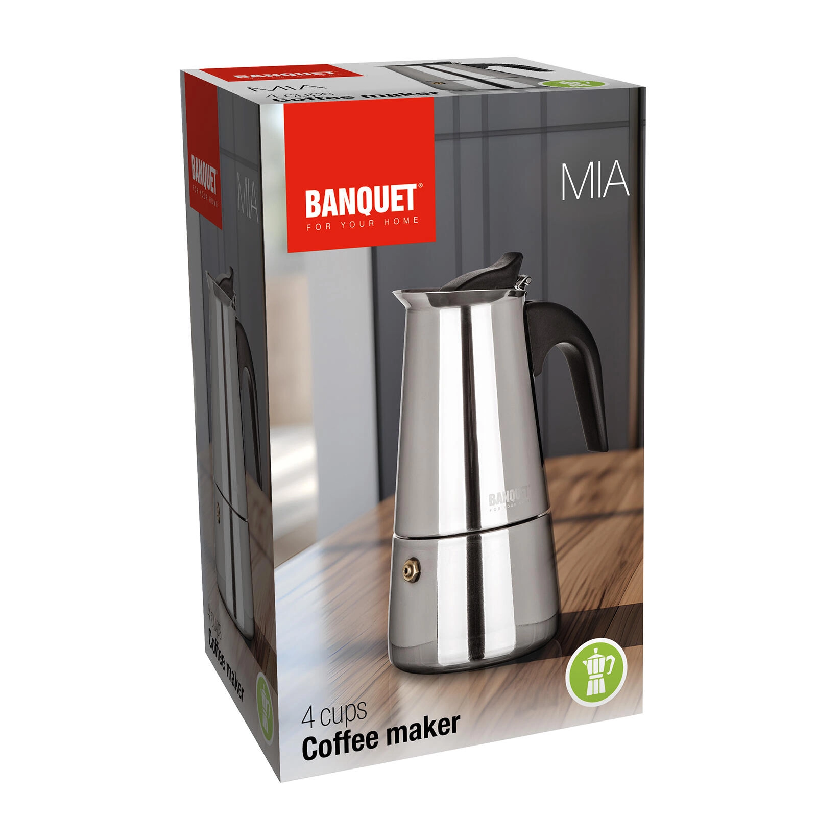 De MIA moka koffiemaker bereidt tot 4 kopjes (200 ml) intense koffie met een rijke crema – ideaal voor je dagelijkse ritueel.