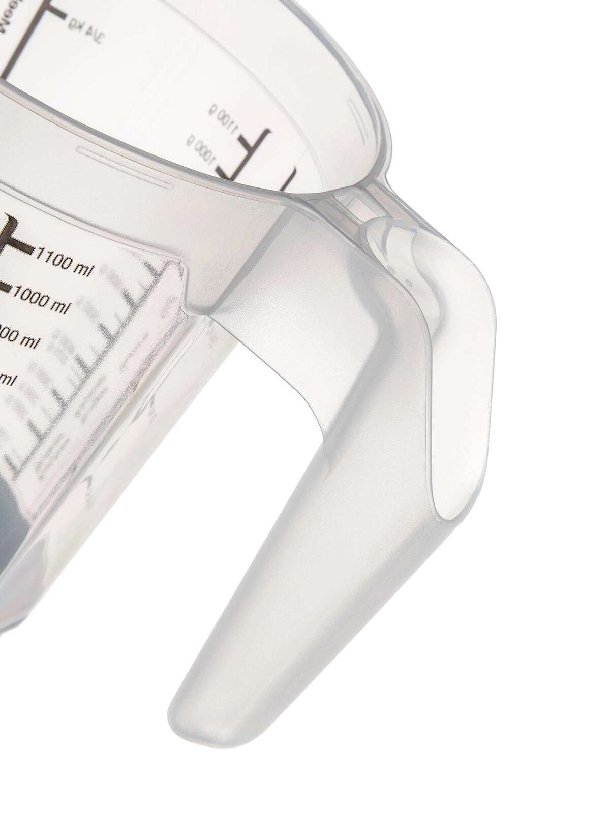De praktische maatbeker met een inhoud van 1 liter maakt dagelijks koken en bakken makkelijker. De transparante uitvoering en duidelijk leesbare markeringen maken het mogelijk om de hoeveelheid in één oogopslag te controleren. De maatbeker is licht, duurzaam en ligt dankzij het ergonomische handvat comfortabel in de hand.