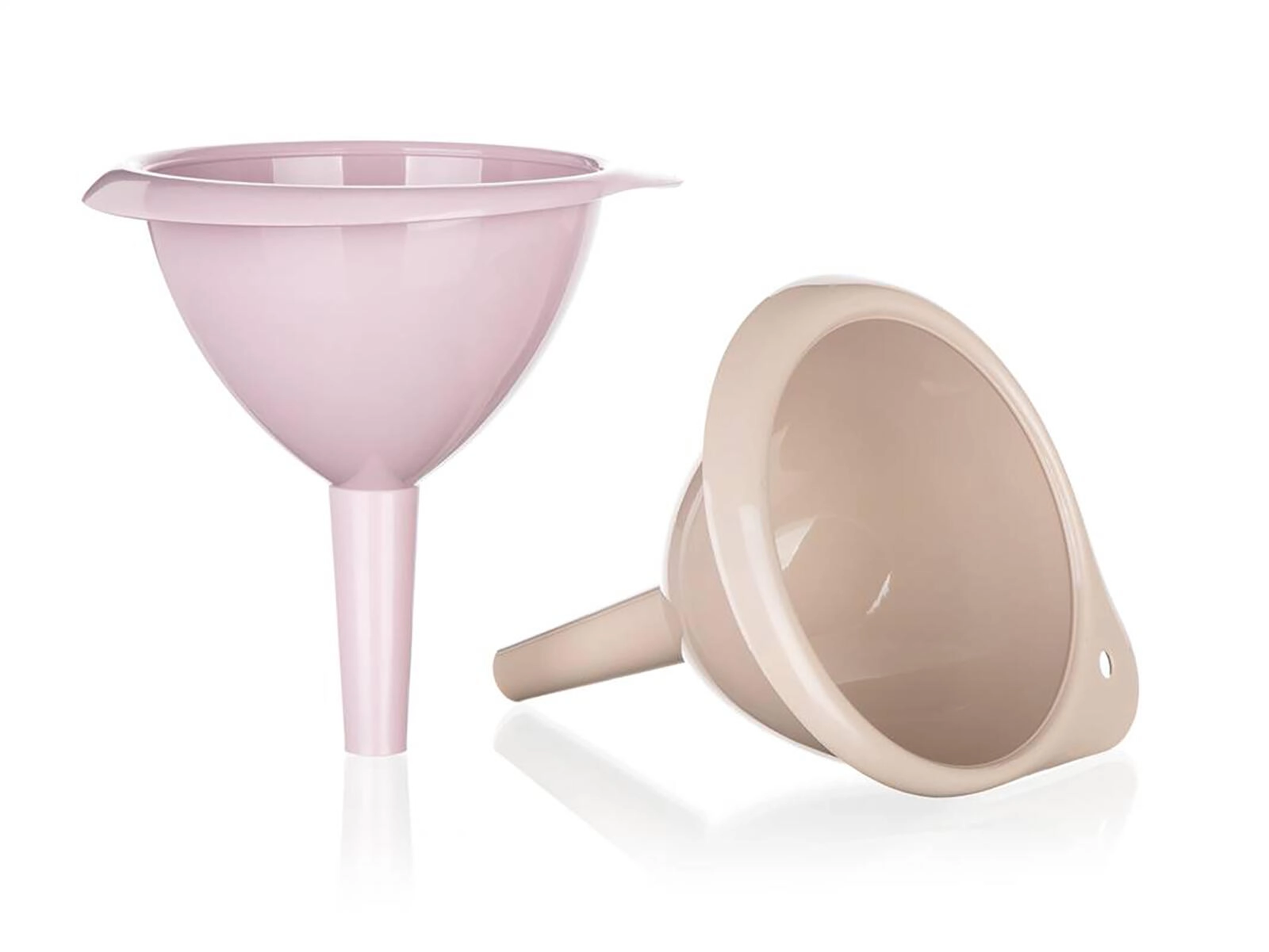 Het gladde plastic is snel af te spoelen en dankzij het ophangoog heb je de trechter altijd bij de hand.