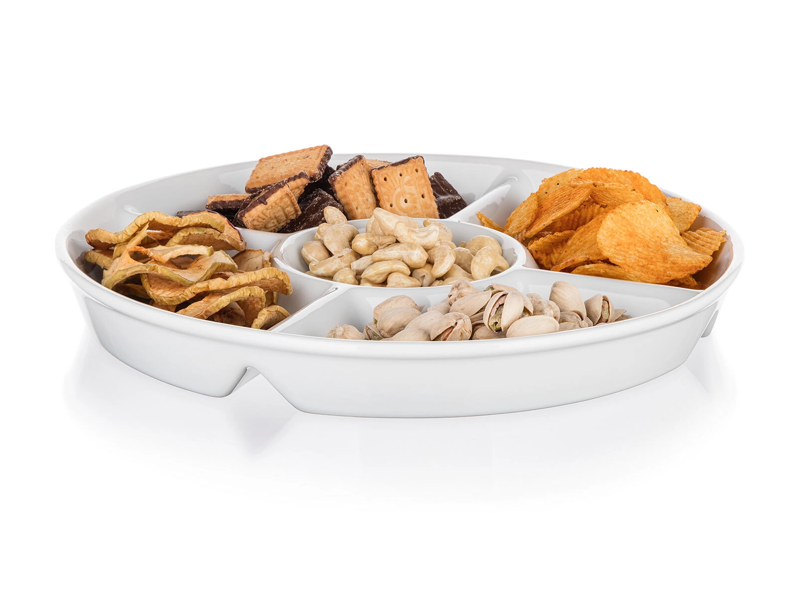 Meerdere vakken maken het mogelijk om diverse hapjes te serveren zonder smaakvermenging – ideaal voor dips, snacks en crudités.
