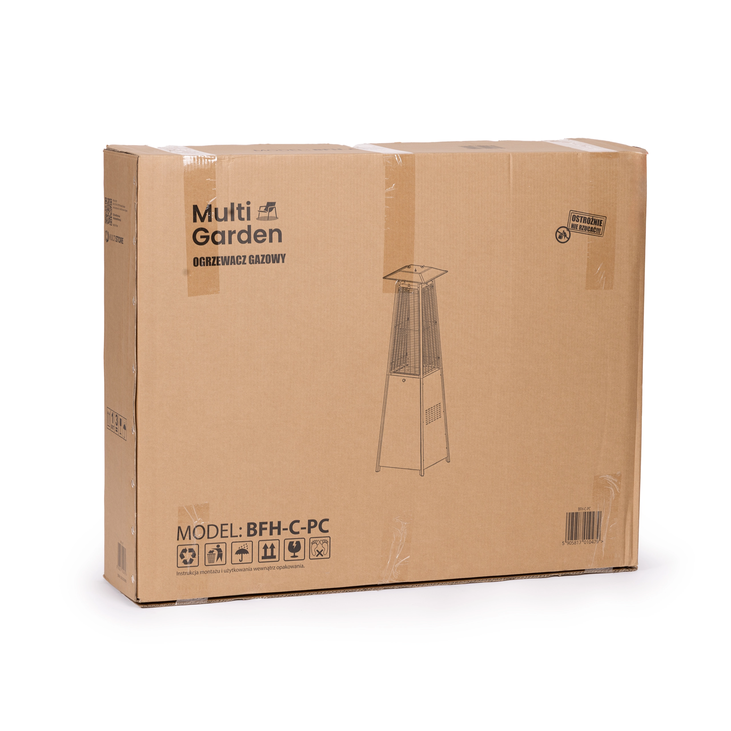 De MULTIGARDEN gasverwarmer verandert je terras, tuin of buitenzitplaats in een comfortabele relaxzone. De hoge zichtbare vlam achter het slijtvaste glazen schild creëert een gezellige sfeer, terwijl de brede stralingshoek zorgt voor een gelijkmatige verwarming van de omgeving. Het moderne design past moeiteloos bij een horecaterras, pergola of thuisterras.