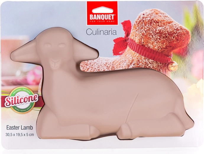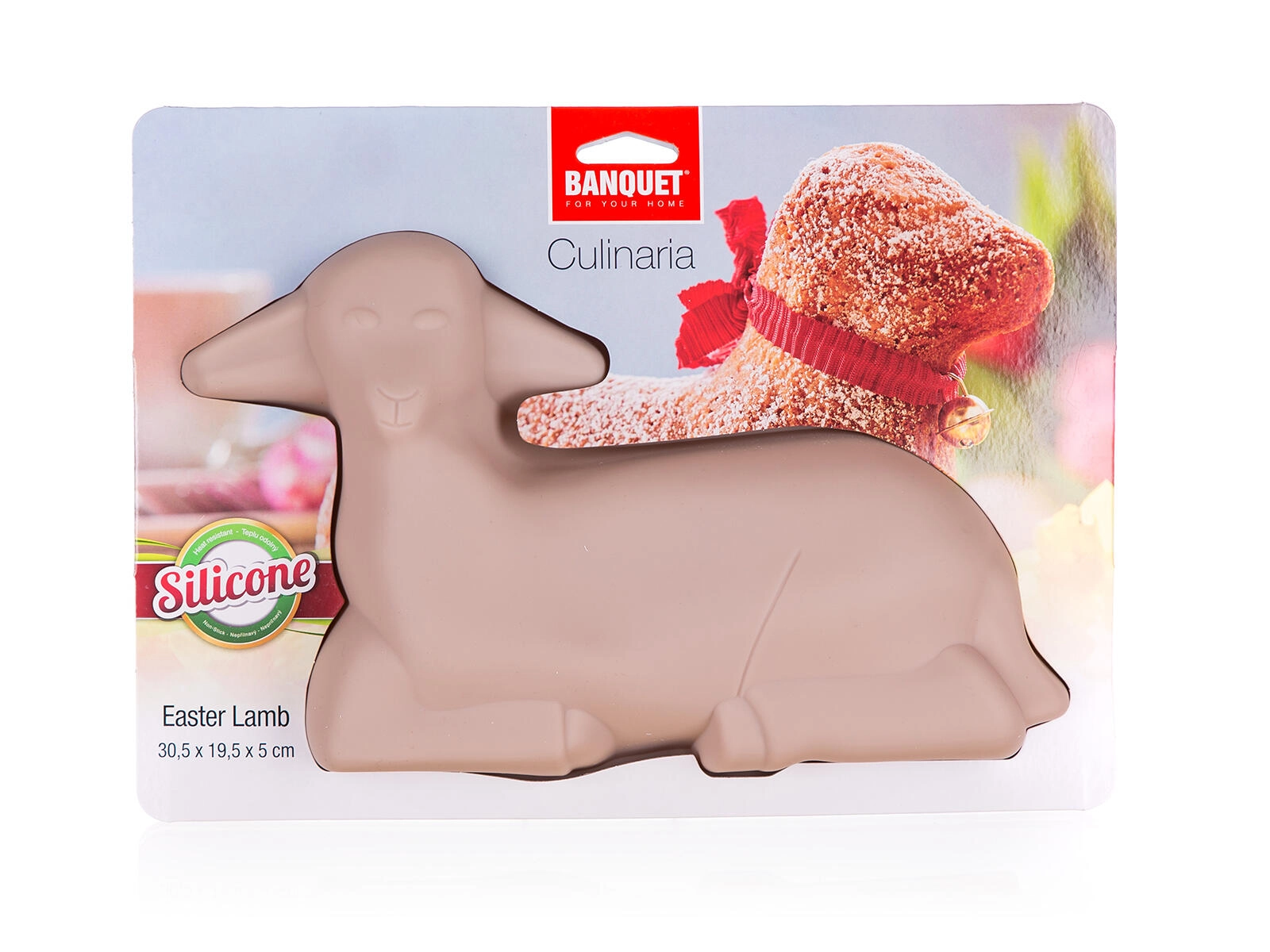 Praktische siliconen bakvorm voor een paaslam met afmetingen 30,5 × 19,5 × 5 cm uit de Culinaria-collectie. Dankzij de antiaanbak silicone is bakken eenvoudig, zonder aanbranden en met gemakkelijk lossen. De vorm is hittebestendig tot 230 °C, neemt geen geuren of smaken op en is vaatwasmachinebestendig.