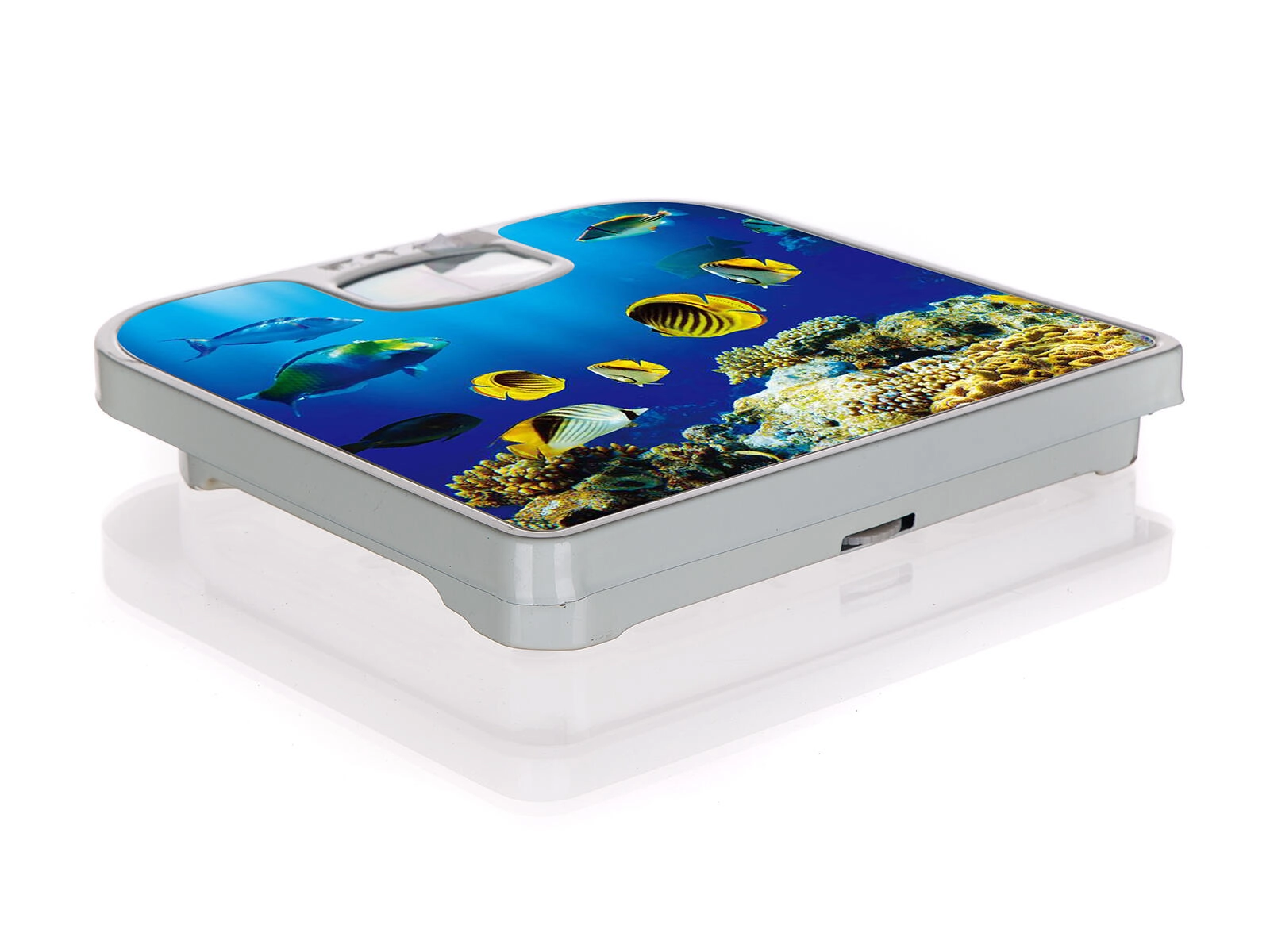 Het kleurrijke oceaanmotief met tropische vissen verfraait je badkamer en zorgt voor een aangename sfeer tijdens het wegen.