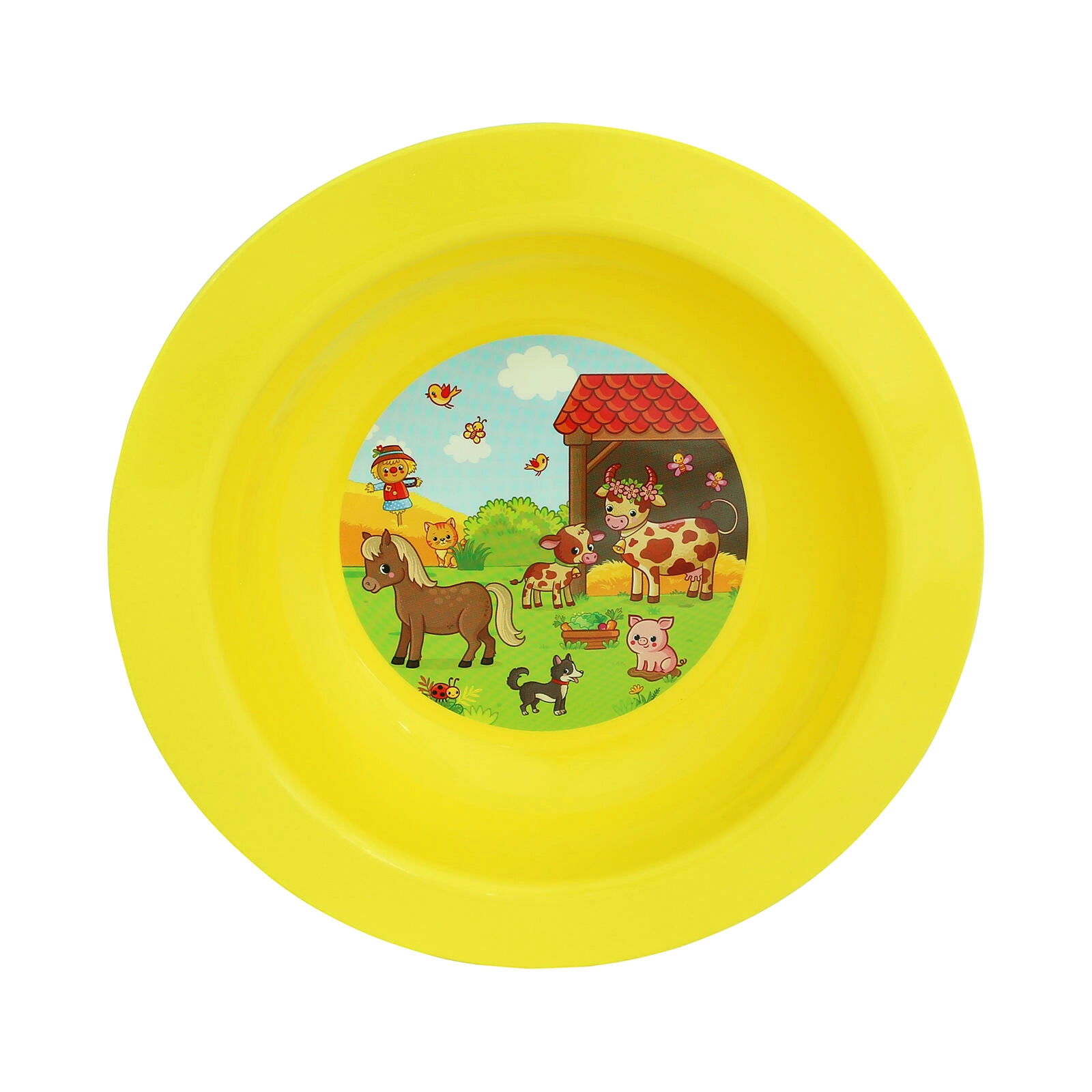 Vrolijk diep kinderbord met BOERDERIJ-motief maakt elke maaltijd leuker. Licht en stevig plastic, praktisch diameter 17,3 cm en vorm geschikt voor soepen en pap. Verkrijgbaar in een mix van kleuren voor zorgeloos en vrolijk tafelen.
