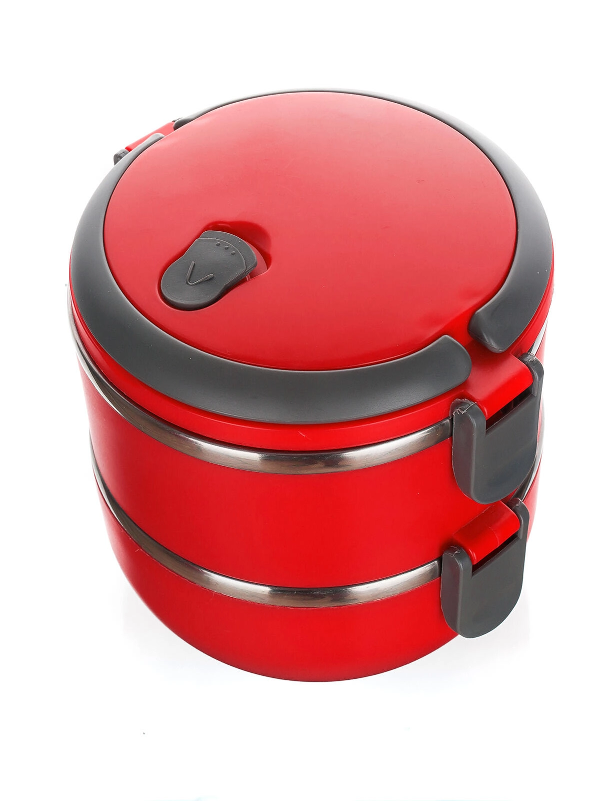 De tweelaagse CULINARIA Red etensdrager in modern rood combineert duurzaam polypropyleen met een roestvrijstalen inzet van staaltype 201 (dikte 0,30 mm). Elke laag van 0,55 l houdt porties gescheiden en dankzij het goed afsluitende deksel met ontluchtingsventiel wordt geur- en warmteverlies geminimaliseerd.