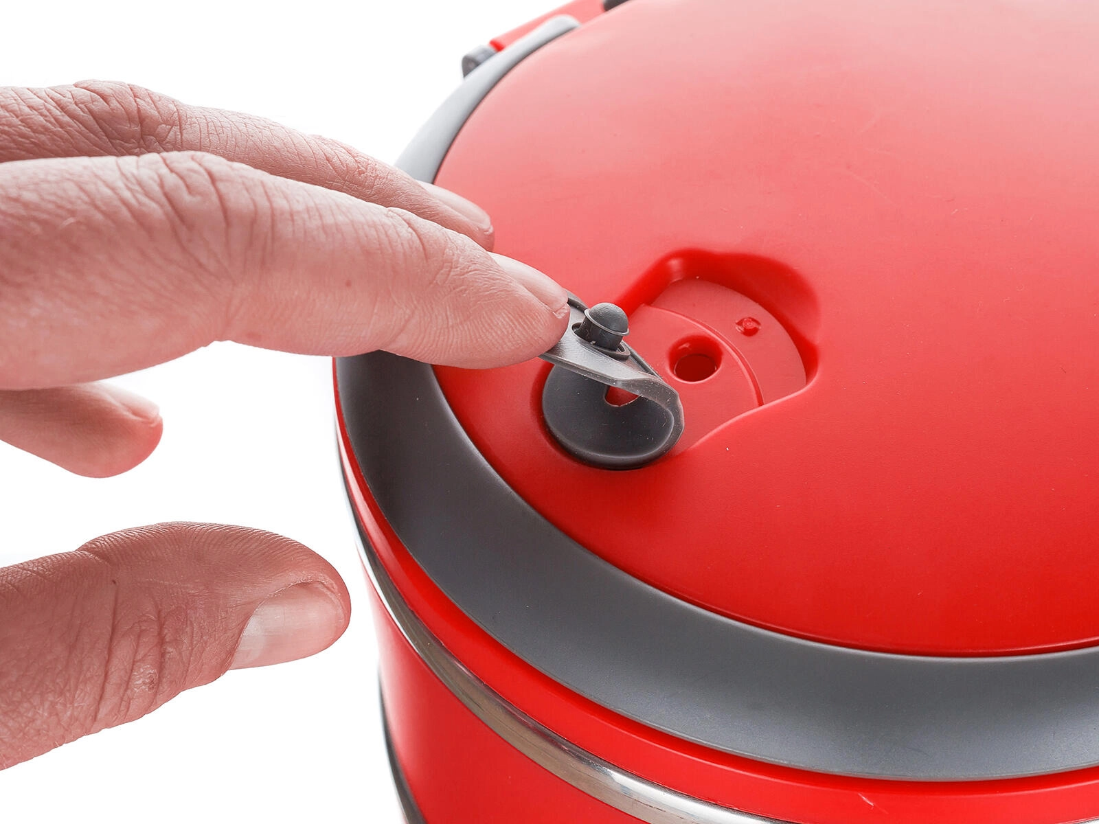 Stevige zijclips voorkomen onbedoeld openen en het ventiel in het deksel laat stoom ontsnappen voor veilig en comfortabel openen.