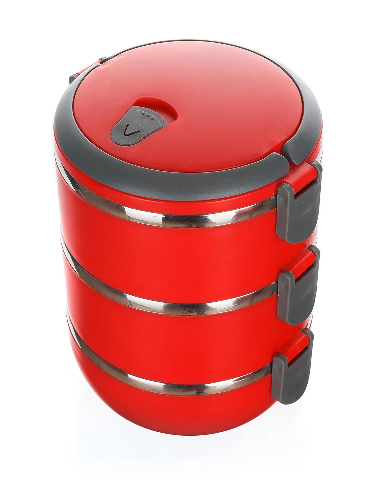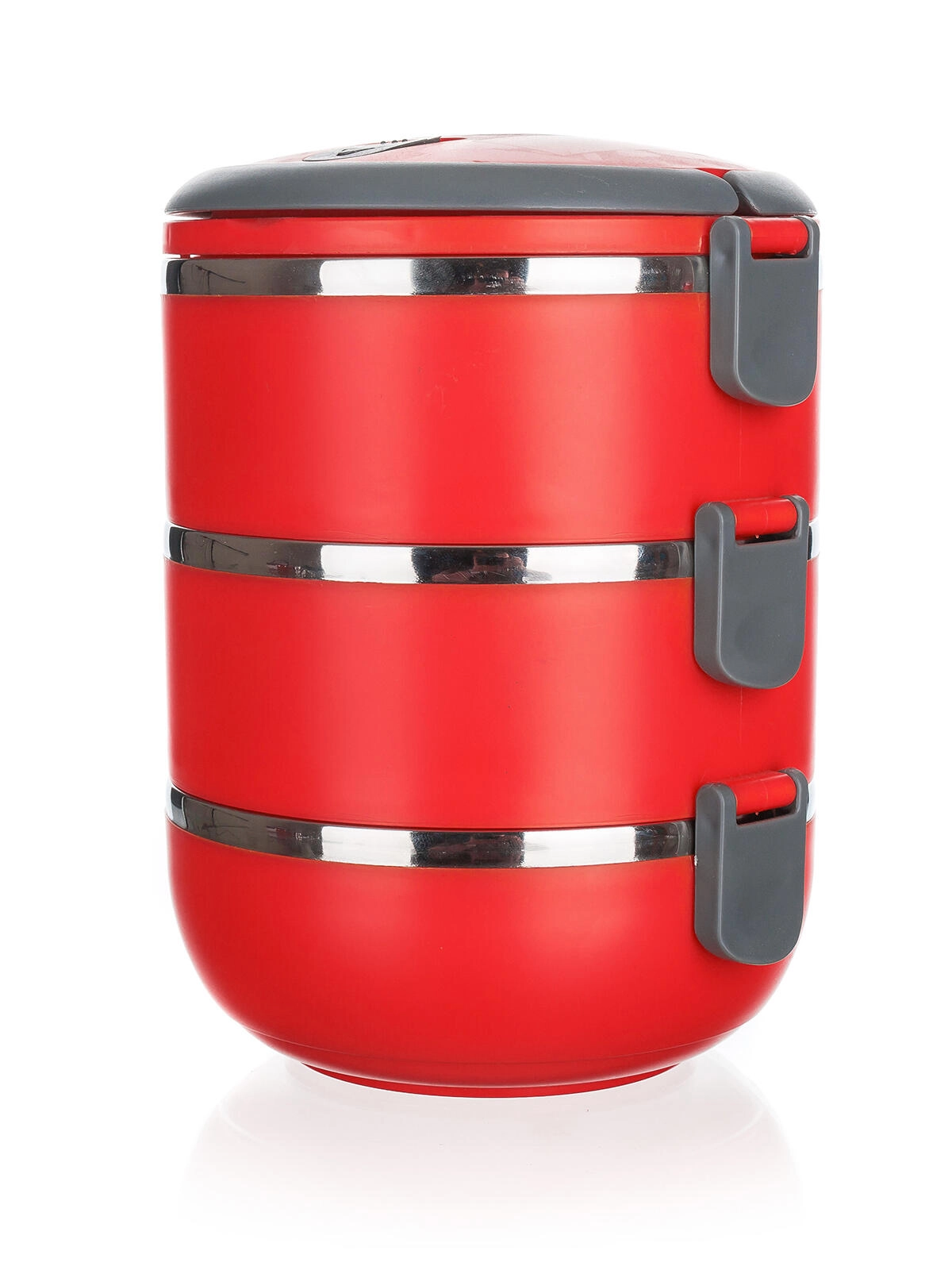 Geniet van comfortabel je lunch meenemen naar werk, school of onderweg. De driedelige voedselcontainer CULINARIA Red biedt drie aparte bakjes (3 × 0,55 l) voor overzichtelijke scheiding van soep, hoofdgerecht en bijgerecht. De binnenkant is van hoogwaardig roestvrij staal 201 voor beter warmtebehoud en eenvoudig reinigen, de buitenmantel van duurzaam polypropyleen beschermt tegen verbranding en verhoogt de robuustheid tijdens transport.