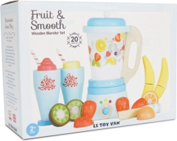 Deze stijlvolle houten set uit de Honeybake-collectie verandert elke kinderkeuken in een smoothiebar. Kinderen kunnen veilig fruit “snijden” met klittenband, de blenderkan vullen en heerlijke drankjes serveren in twee bekers met rietje. De realistische details stimuleren rollenspel, ontwikkeling van de fijne motoriek en cognitieve vaardigheden.