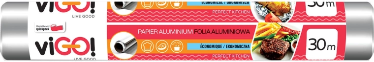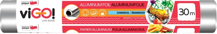 Praktische aluminiumfolie voor dagelijks gebruik in de keuken. Ideaal voor bakken, stoven en grillen, evenals voor het verpakken en bewaren van voedsel. Dankzij het kwaliteitsmateriaal beïnvloedt het niet het uiterlijk, de smaak of de geur van het eten en kan het veilig worden gebruikt in de oven, koelkast en vriezer. De breedte van 28 cm en lengte van 30 m zorgen voor comfortabel gebruik in het huishouden.