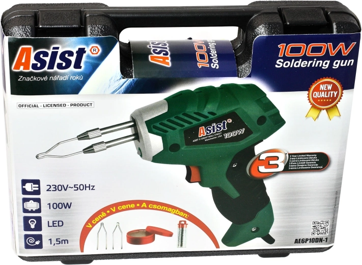 Deze elektrische soldeerpistool van ASIST levert een stabiel vermogen van 100 W voor snel bereiken van werktemperatuur en efficiënt solderen van metalen en elektronische verbindingen. Dankzij de uitgebalanceerde constructie, het lage gewicht en de zachte Softgrip-handgreep ligt hij ook bij langer gebruik uitstekend in de hand. De geïntegreerde LED-verlichting verbetert de zichtbaarheid en precisie bij fijn werk.
