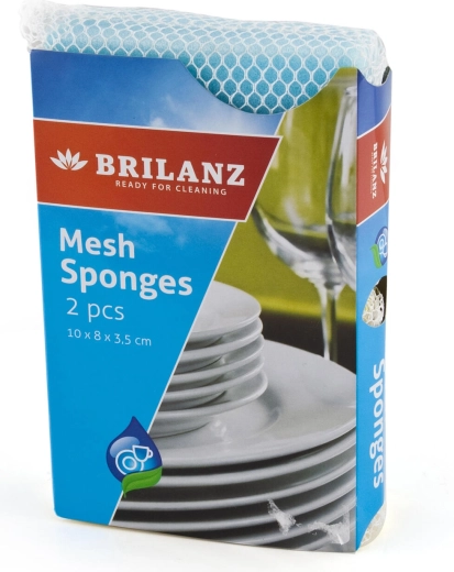 Praktische BRILANZ afwassponsjes in een verpakking van 2 stuks voor eenvoudig en effectief reinigen. De combinatie van een fijne netlaag en een schuimkern verwijdert vuil zacht maar doeltreffend zonder te krassen. Universele afmeting 10 × 8 × 3,5 cm ligt prettig in de hand en de kleurenmix geel/blauw geeft je keuken een frisse uitstraling.