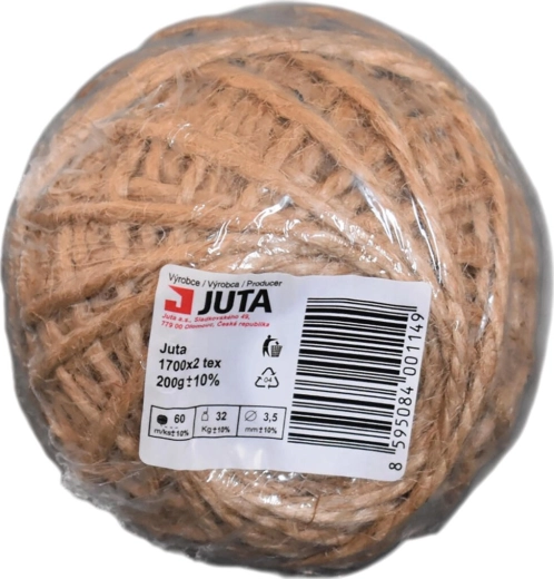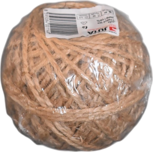 Natuurlijk jutetouw in bruine kleur met grovere structuur voor veelzijdig gebruik in huis en tuin. Het biedt een diameter van 3,5 mm, een lengte van 60 m en een treksterkte tot 32 kg. Het is biologisch afbreekbaar, ideaal voor het inpakken van pakketten en cadeaus, decoratie, arrangementen en tuinieren.