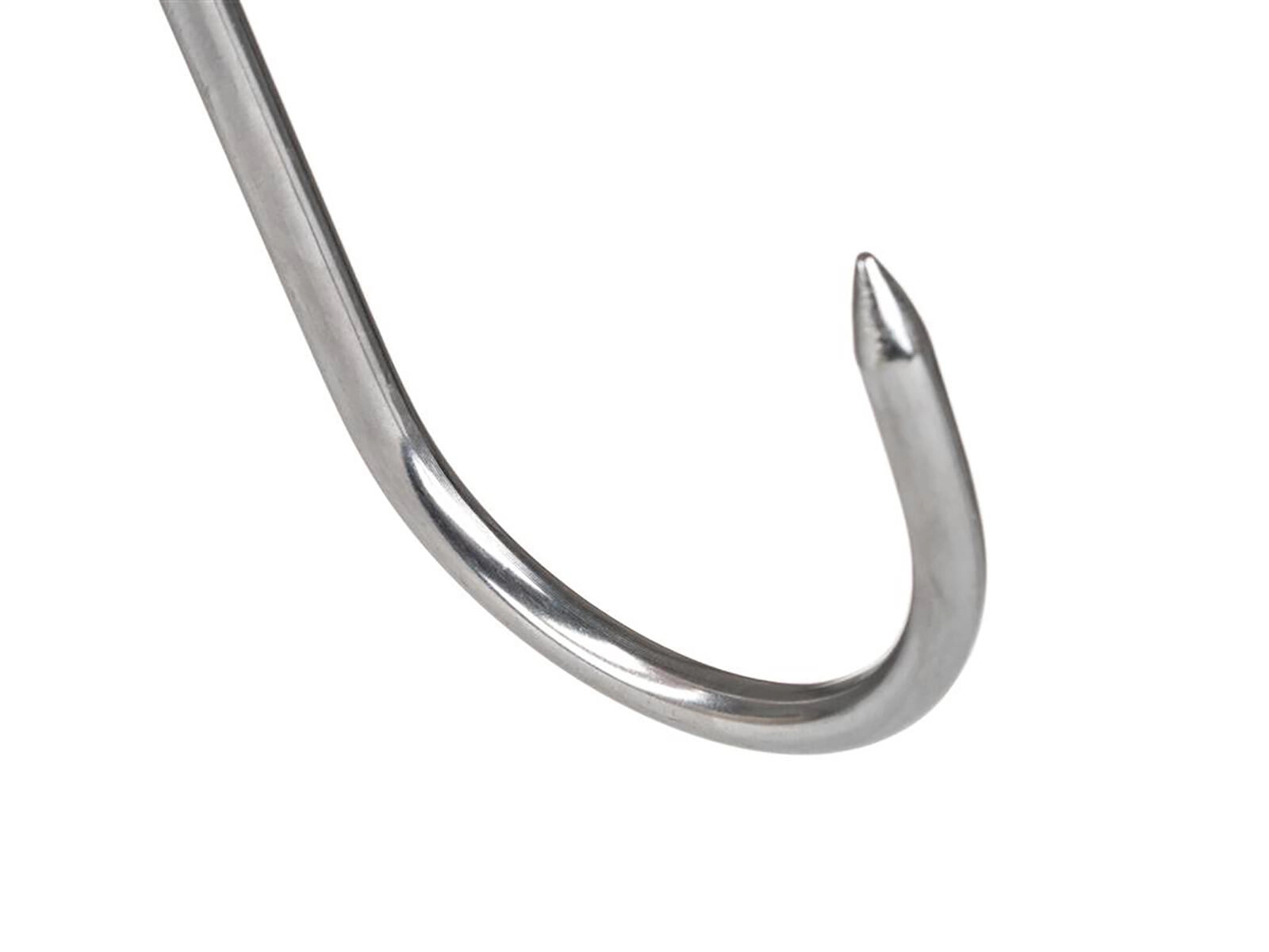 Betrouwbare AKCENT-rookhaakjes van roestvrij staal, ideaal voor zowel thuis als professioneel roken. Dankzij de robuuste diameter van 5 mm bieden ze een hoog draagvermogen en stabiliteit bij het ophangen van verschillende vleessoorten. Het gladde roestvrijstalen oppervlak maakt het onderhoud eenvoudig en garandeert een lange levensduur.