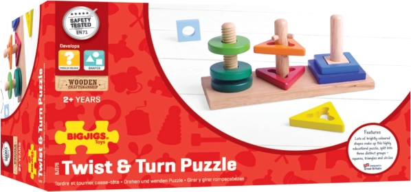 De puzzel is gemaakt van hoogwaardig, verantwoord verkregen hout en gebruikt veilige verf. De stukjes kunnen worden gerangschikt van groot naar klein, gesorteerd op kleuren en vormen, of gecombineerd tot eigen spelletjes. De compacte afmetingen zijn geschikt voor de kinderkamer en voor onderweg.