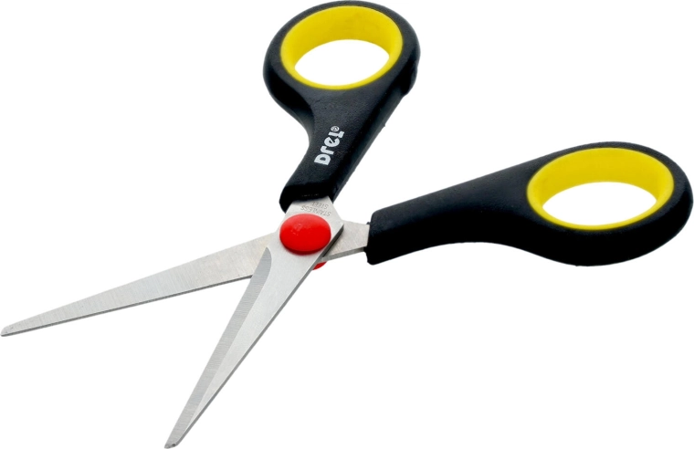 Deze compacte schaar is een betrouwbare hulp voor dagelijks knippen van papier, textiel en dunne kunststoffen. De geharde RVS bladen bieden langdurige scherpte en corrosiebestendigheid, terwijl de ergonomisch gevormde, gerubberde handgrepen zorgen voor een stevige en comfortabele grip zonder wegglijden.
