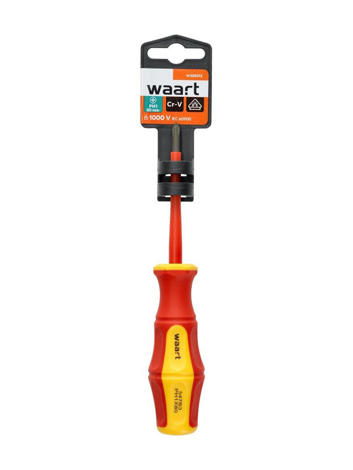 Professionele geïsoleerde kruiskopschroevendraaier PH1 × 80 mm met VDE-certificering tot 1000 V voor veilig werken aan elektrische installaties. Duurzaam CrV-staal zorgt voor een lange levensduur en nauwkeurige krachtoverdracht, terwijl de ergonomische handgreep van TPR en PP een zekere, antislip grip biedt. Geïsoleerde kling en precieze PH-punt voor betrouwbaar vastdraaien van kruiskopschroeven.
