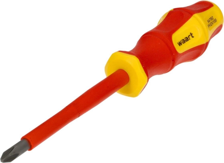 Betrouwbare elektrotechnische schroevendraaier voor PH2 kruiskopschroeven, die de sterkte van CrV-staal combineert met VDE-isolatie over de volledige klinglengte. Dankzij de ergonomische handgreep van TPR en PP biedt hij een comfortabele, antislip grip, ook bij langer werken.
