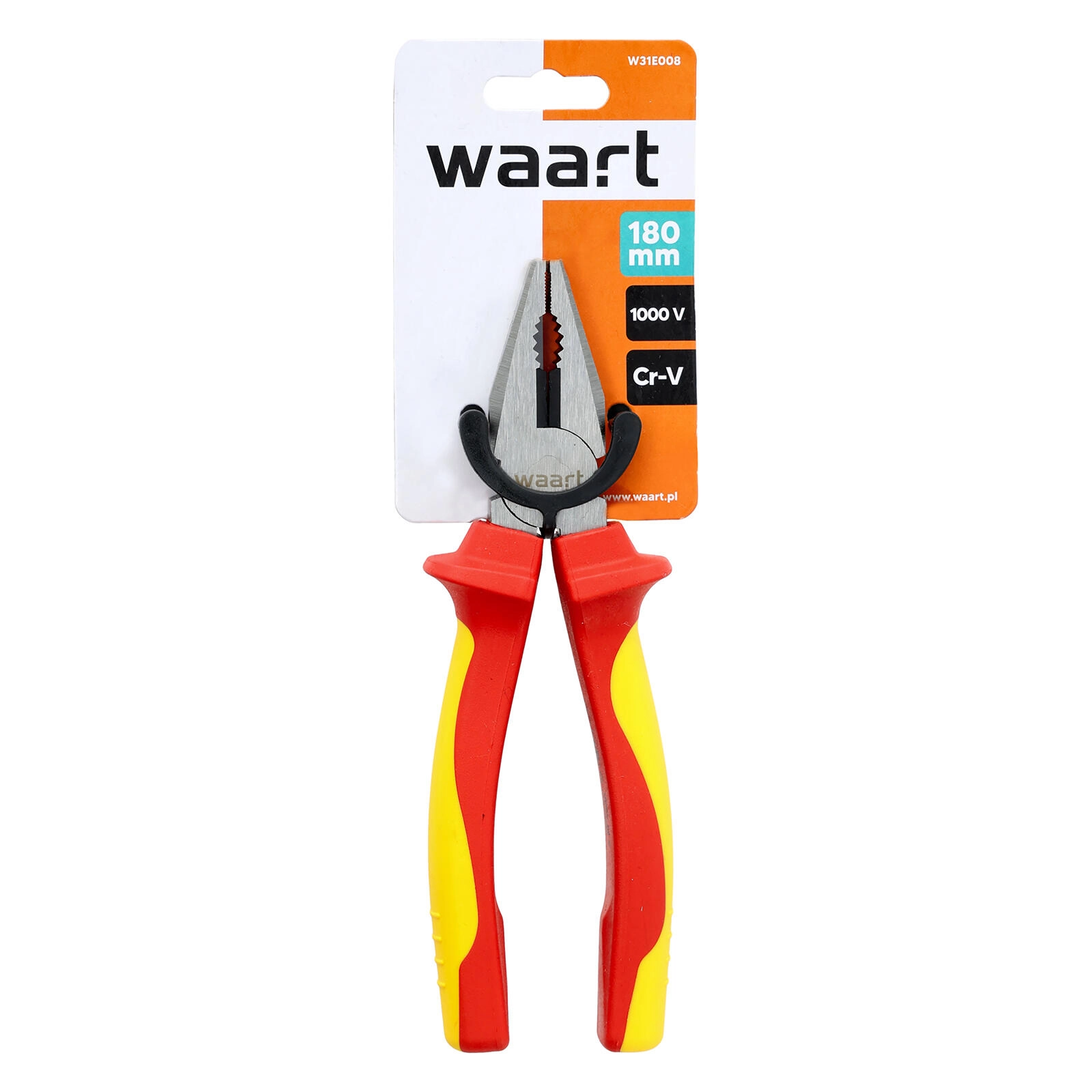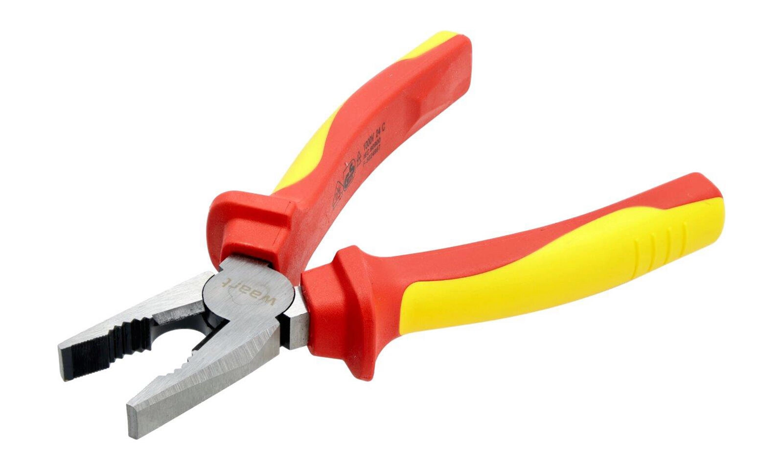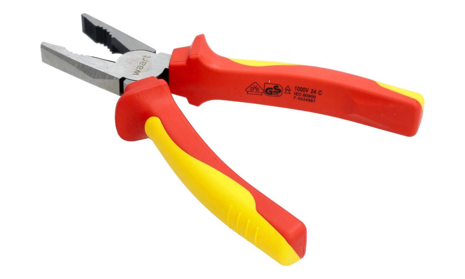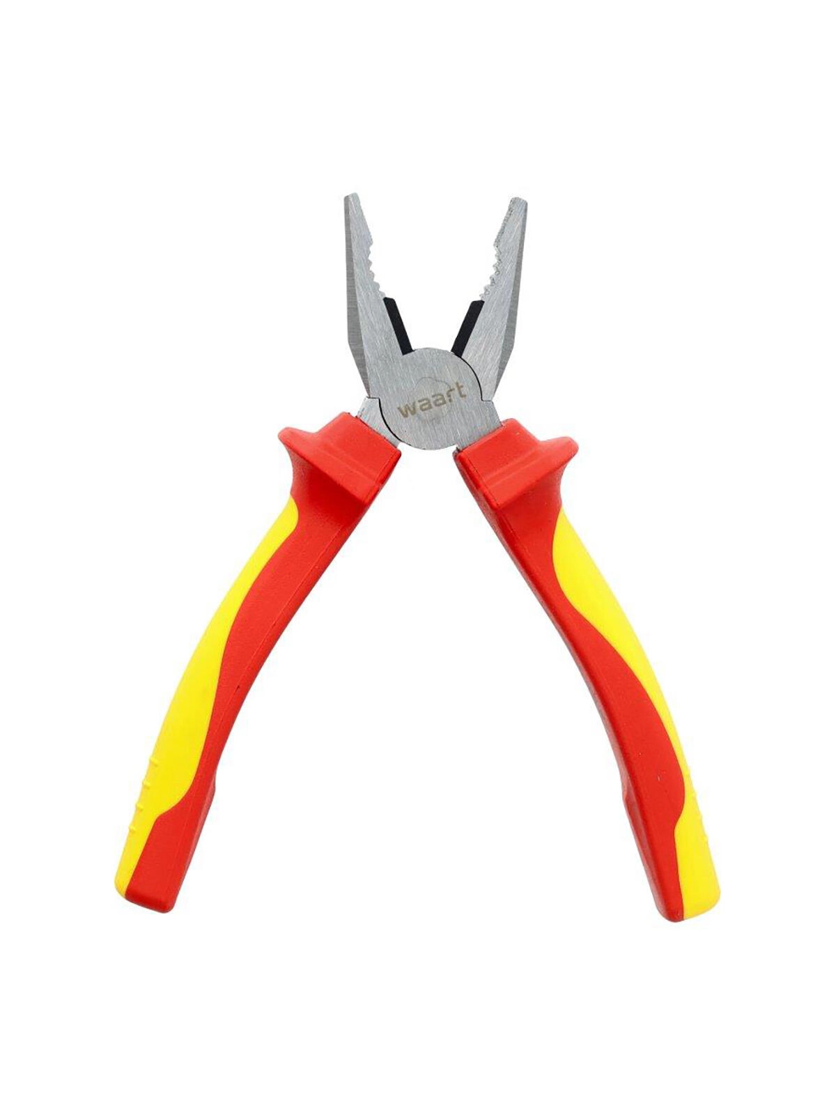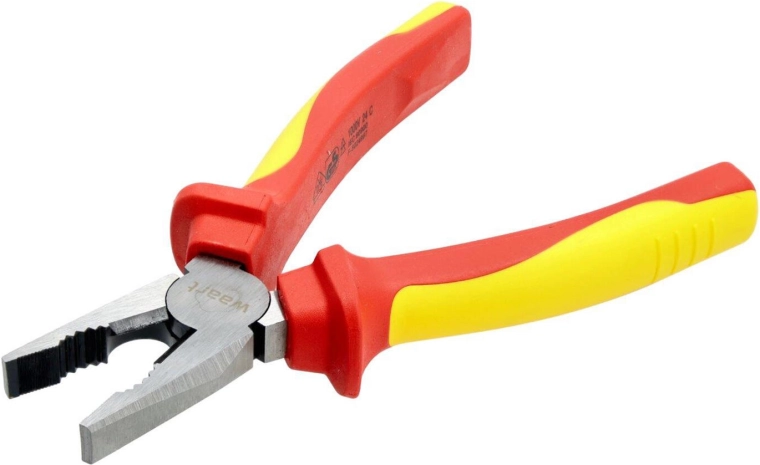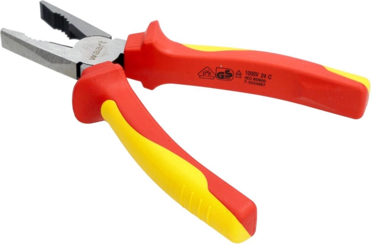 Professionele geïsoleerde combinatietang 180 mm met VDE/GS-certificering voor veilig werken tot 1000 V. Slijtvast snijgedeelte van 60CrV met een hardheid van 58–62 HRC en een ergonomische tweekleurige TPE-handgreep zorgen voor een zekere grip, nauwkeurig knippen en een lange levensduur, zelfs onder veeleisende omstandigheden.