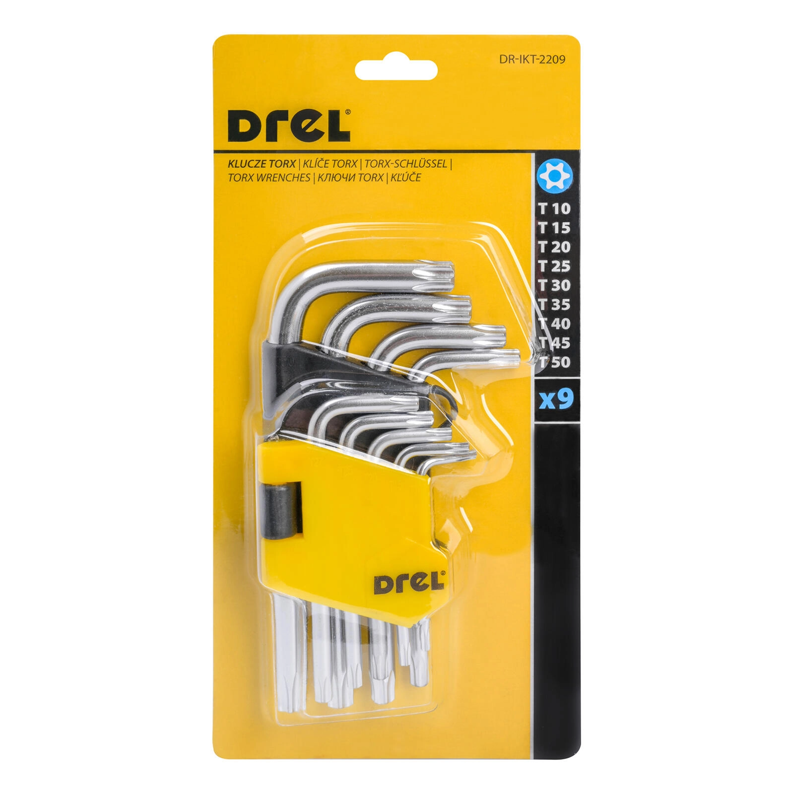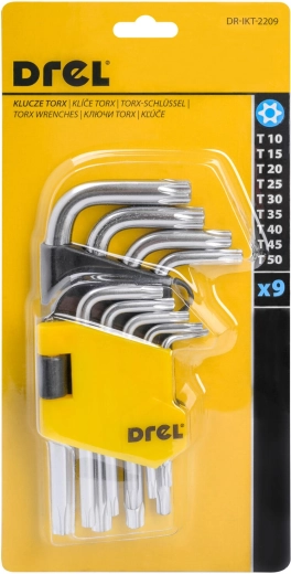Set Torx-inbussleutels T10–T50, 9-delig, S2-staal, DREL