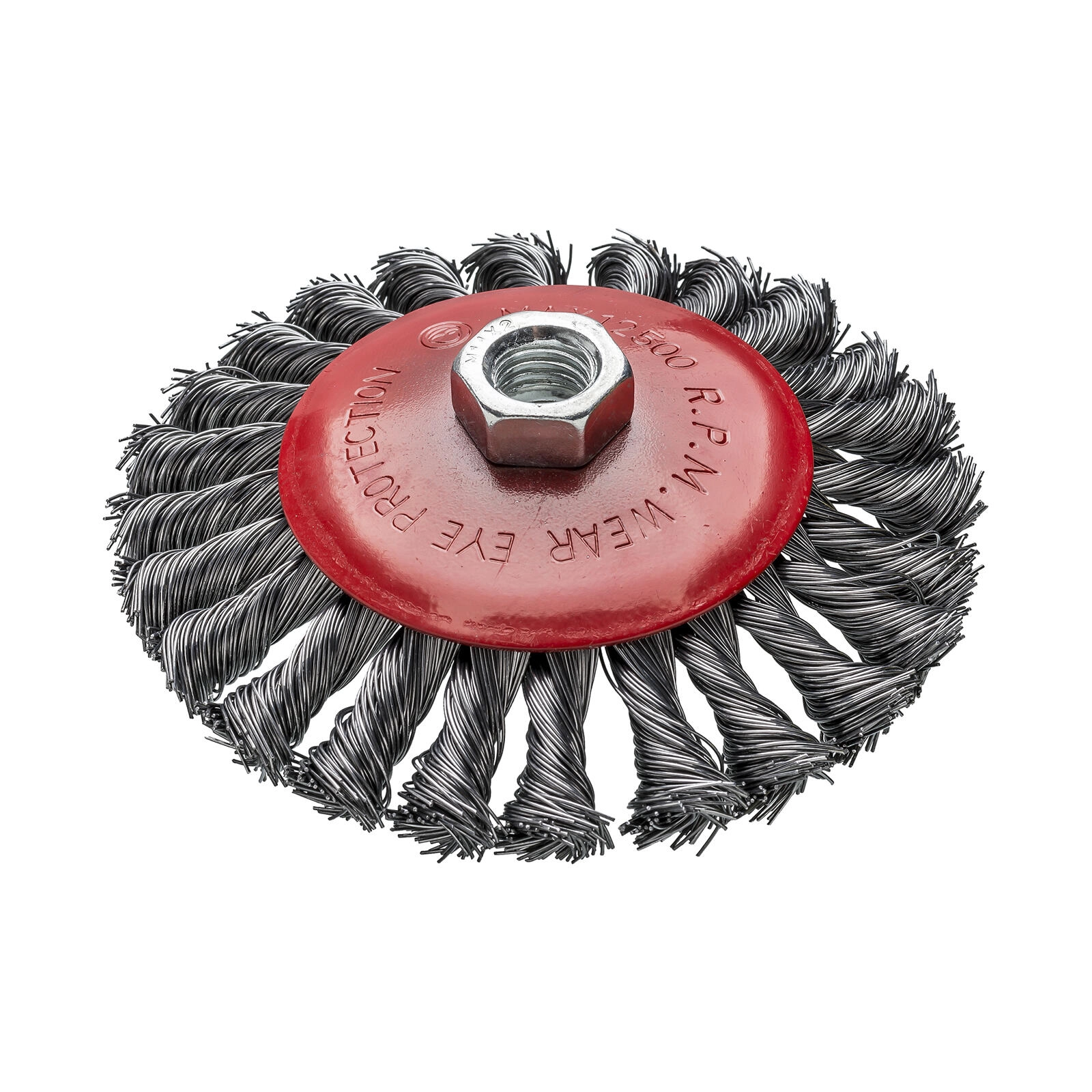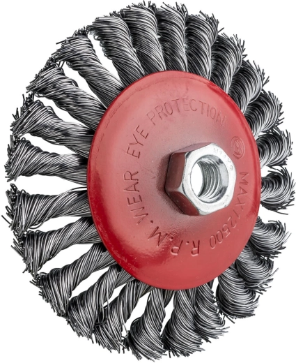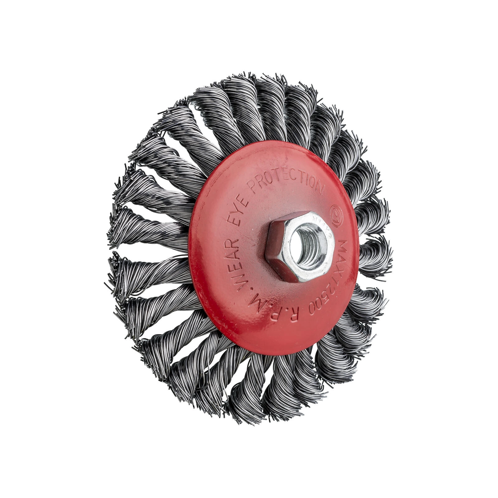 Krachtige komborstel voor haakse slijpers met bevestiging M14, ontworpen voor het verwijderen van roest, oude verflagen en hardnekkig vuil. Dankzij de getwiste stalen draad van 0,3 mm biedt hij agressieve reiniging en een lange levensduur, terwijl de komvorm het werk vergemakkelijkt op moeilijk bereikbare plaatsen.