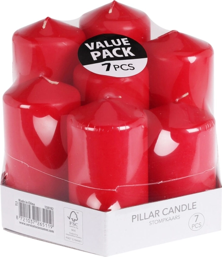 Elegante set rode kaarsen in 7 verschillende hoogtes voor een knusse sfeer in huis. Ideaal voor interieurdecoratie, bruiloftstafels en seizoensarrangementen. Lange brandduur, uniforme diameter van 55 mm en hoogwaardige was zorgen voor een mooie en gelijkmatige vlam.