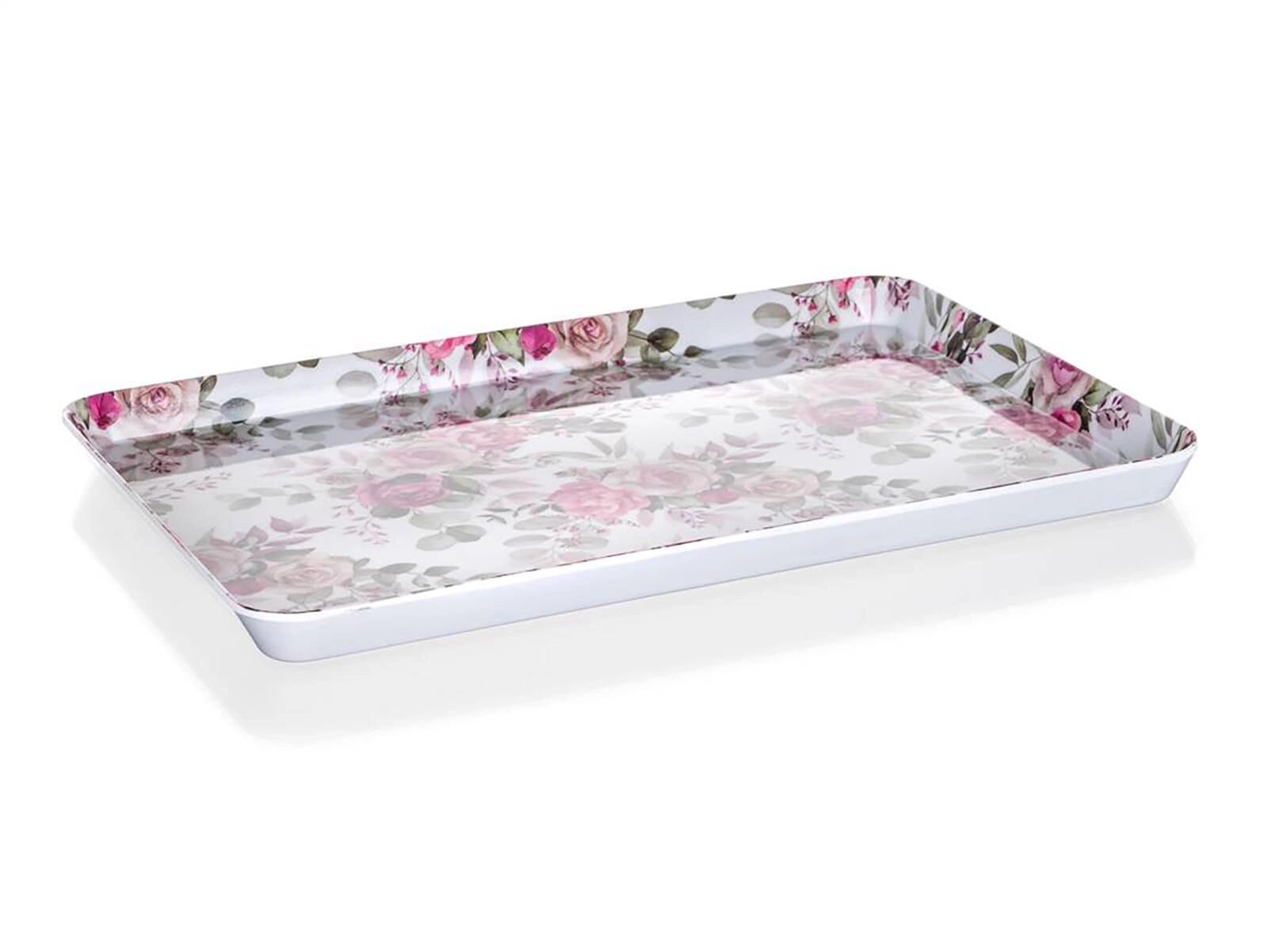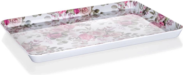 Het melamine dienblad ROSE is een geweldige hulp in de keuken en in de tuin. Het biedt voldoende ruimte voor het serveren van hapjes, drankjes of desserts en ligt dankzij de afmetingen comfortabel in de hand, ook bij volle belasting. Melaminehars staat bekend om zijn hoge bestendigheid en tegelijk lage massa.