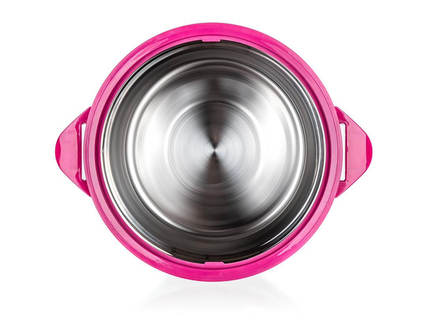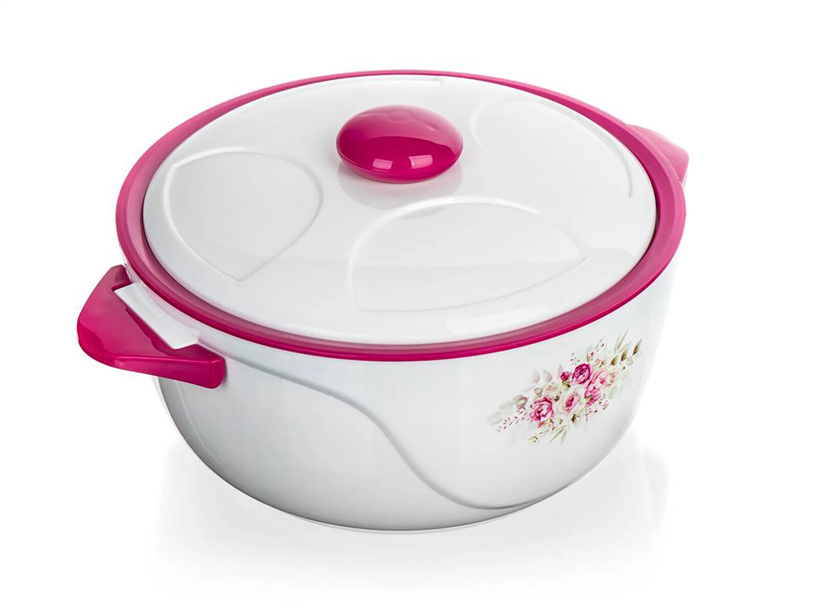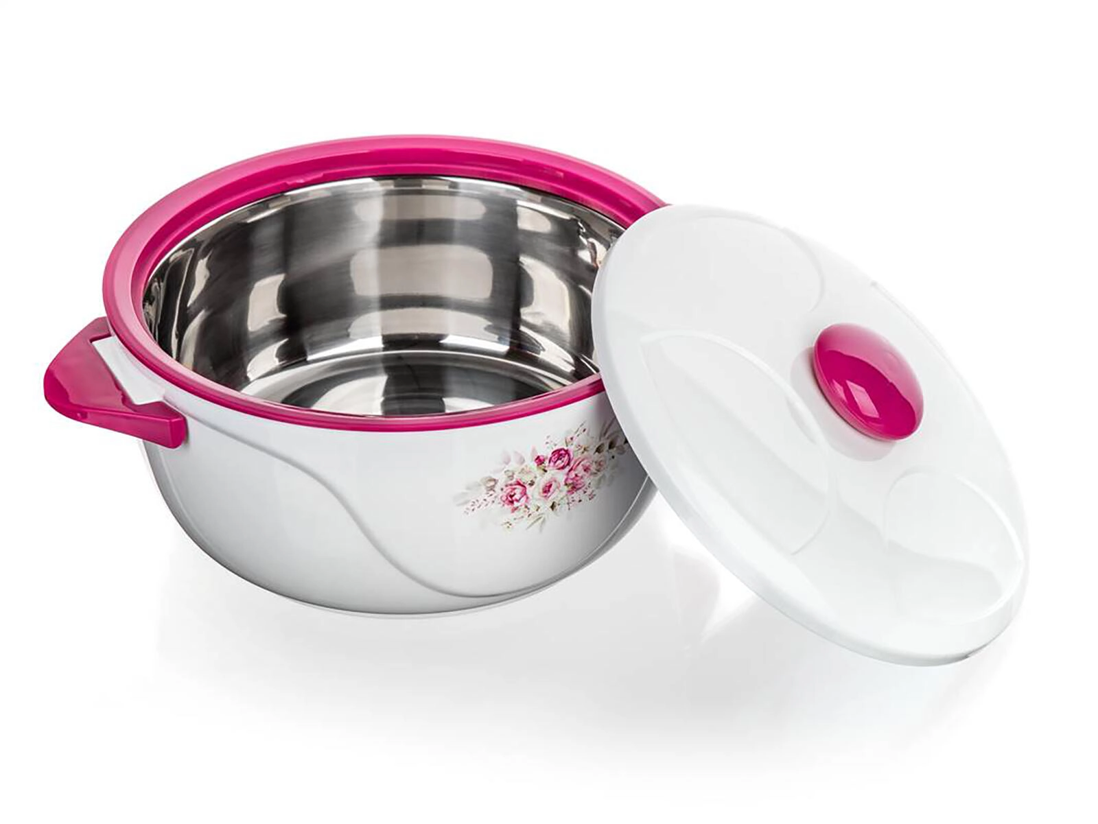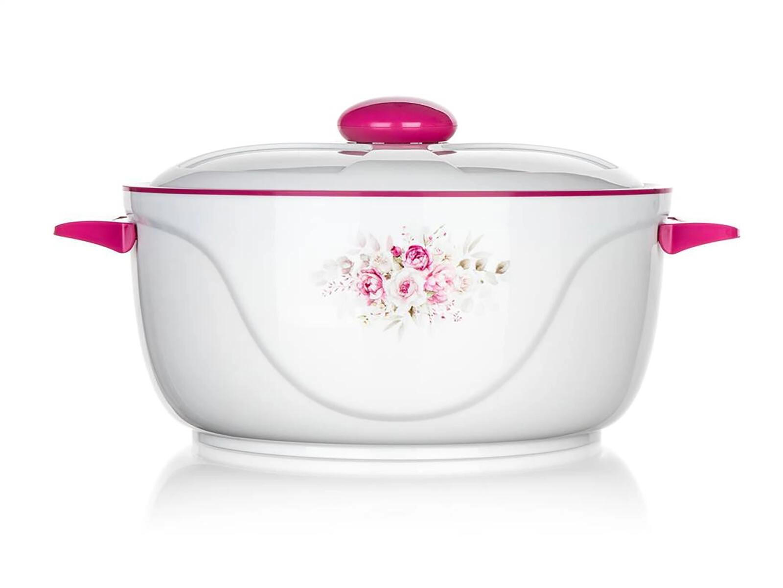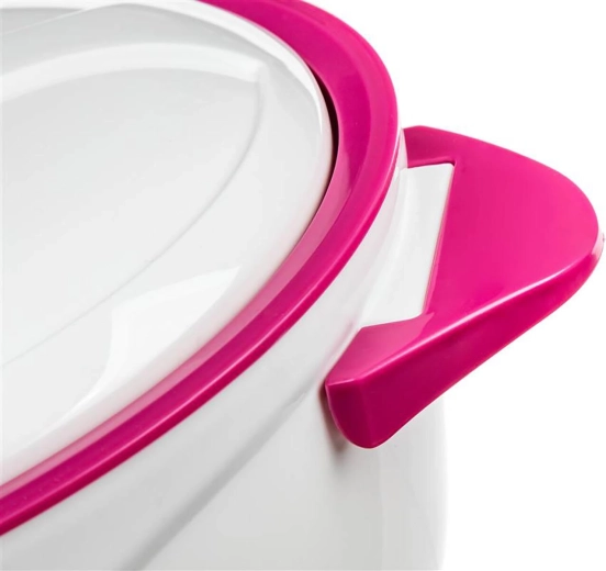 De thermoschaal ROSE 3,5 l is een praktische hulp voor elke keuken. De combinatie van een roestvrijstalen binneninzet en PUR-isolatie behoudt betrouwbaar de temperatuur van je gerechten tijdens zowel bewaren als transporteren. Het stijlvolle design met bloemmotief en roze details vult bovendien de tafel mooi aan tijdens het serveren.