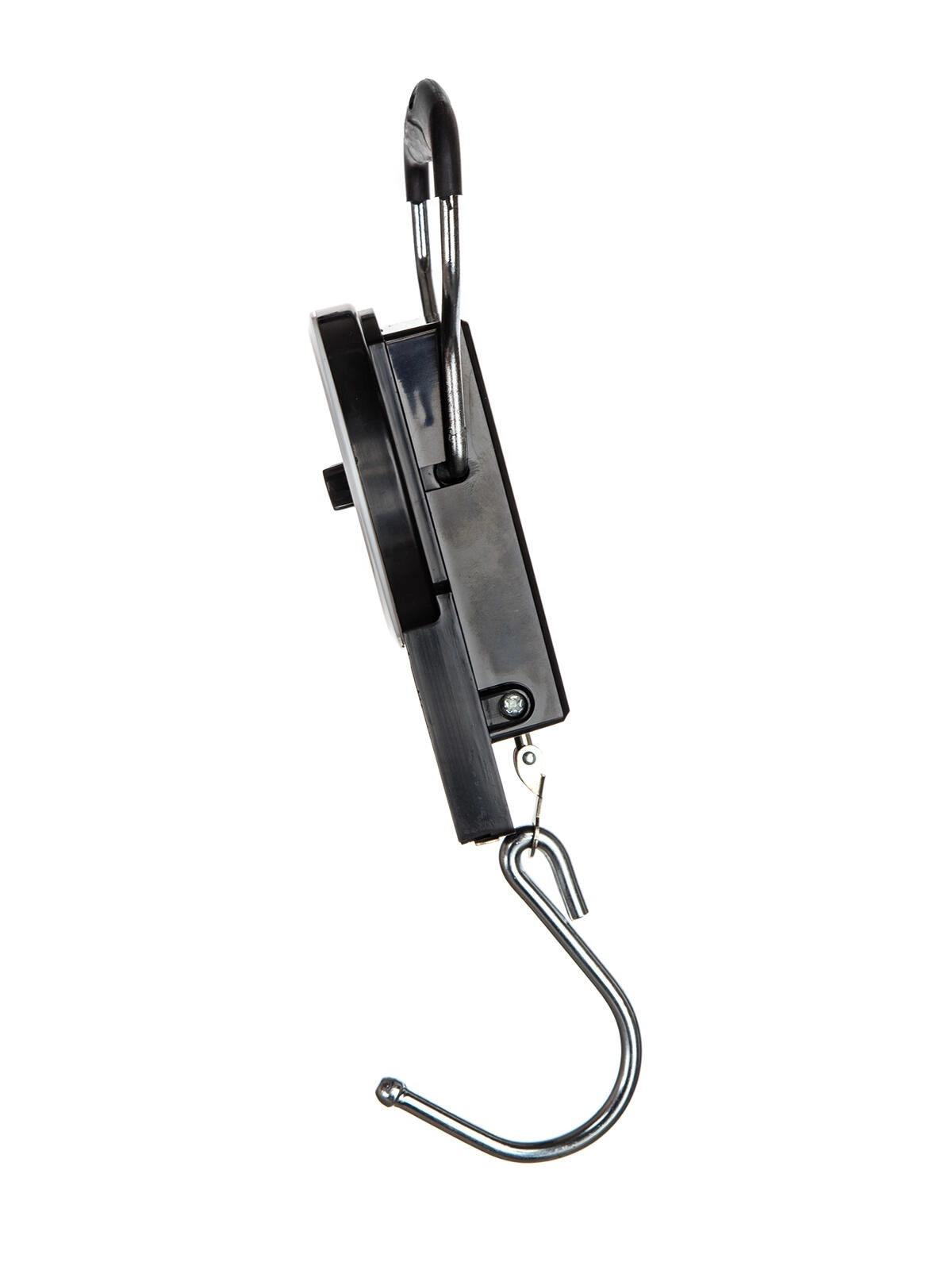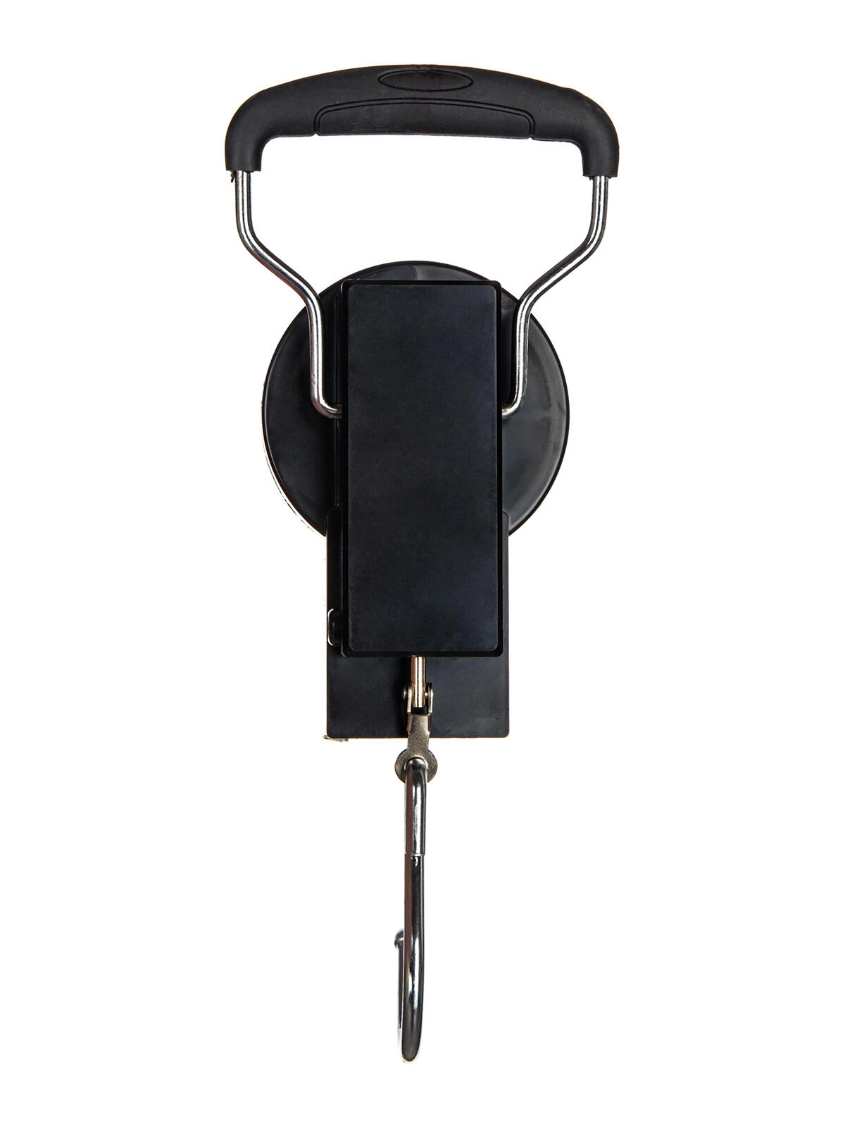 De robuuste metalen haak houdt ook zwaardere koffers veilig vast en de ergonomische handgreep zorgt voor comfortabel tillen en een stabiele grip.