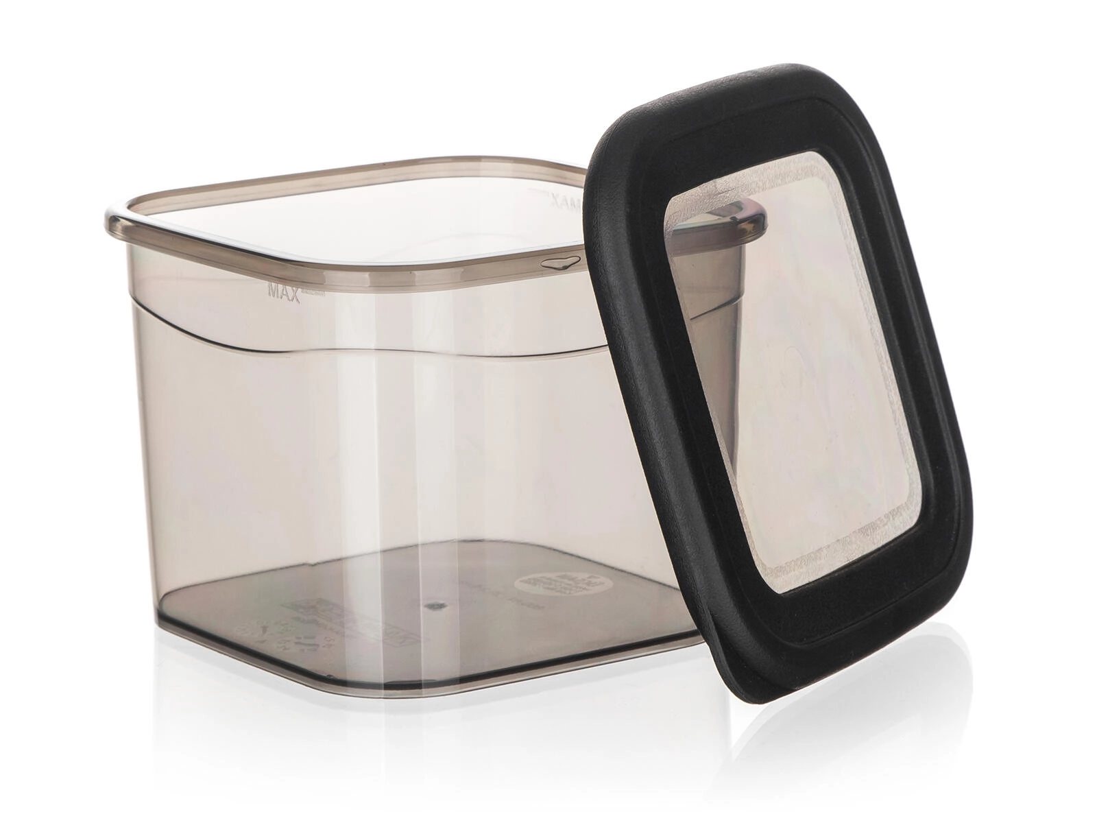 Het doorzichtige rookgrijze design laat je snel de inhoud en hoeveelheid controleren zonder het deksel te openen.