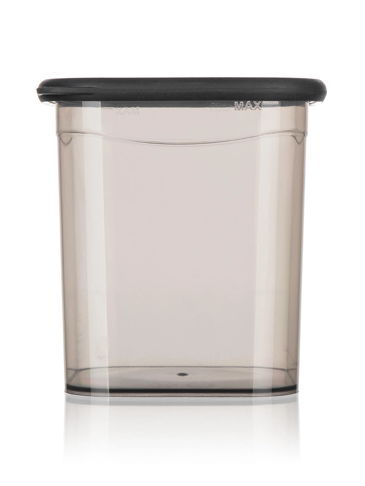 De LISSA-doos met een inhoud van 0,9 l is ideaal voor het bewaren van pasta, rijst, ontbijtgranen of gedroogde ingrediënten. Dankzij de vierkante basis past hij perfect in planken en laden, terwijl de rookgrijs transparante wanden directe inhoudscontrole mogelijk maken zonder te openen.