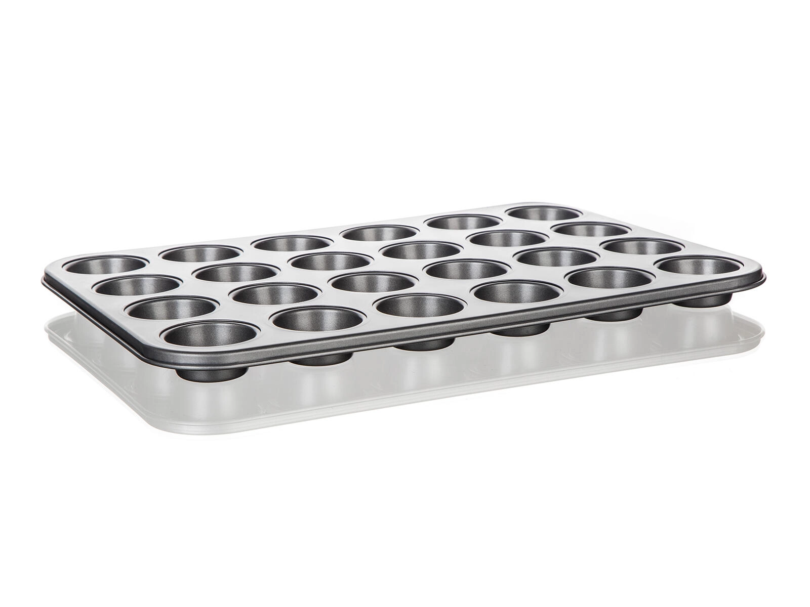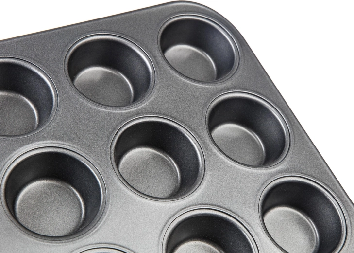 Dankzij de compacte afmetingen van 37,8 × 26 × 2 cm past de plaat in de meeste huishoudovens. Het zilvergrijze binnen- en buitenoppervlak oogt elegant en is zeer slijtvast. Bak perfect egale mini-desserts zonder aanbranden en met minimaal vet.