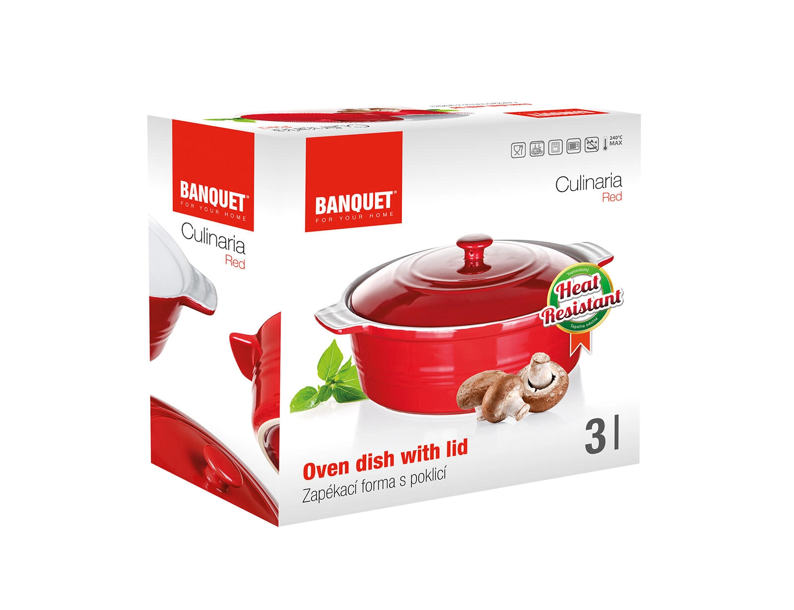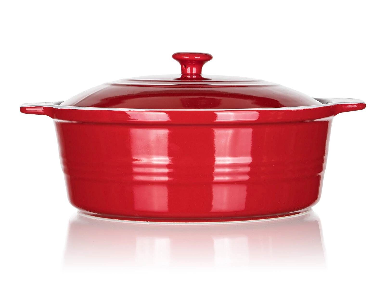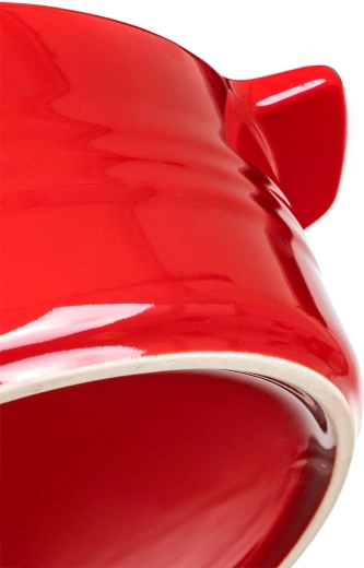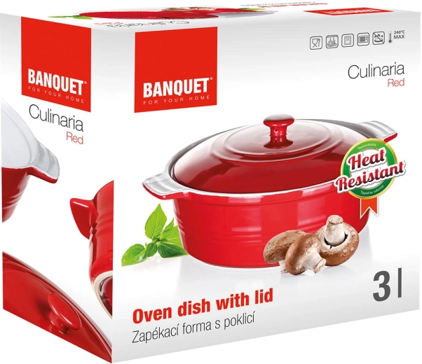 Praktische handgrepen zorgen voor een zekere grip tijdens het dragen, het deksel helpt vocht en aroma te behouden en beschermt gerechten tegen uitdrogen. De gladde glazuur maakt reinigen en onderhoud eenvoudig. De schaal is niet geschikt voor gebruik op een kookplaat.