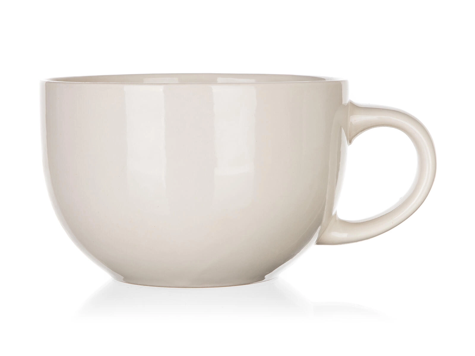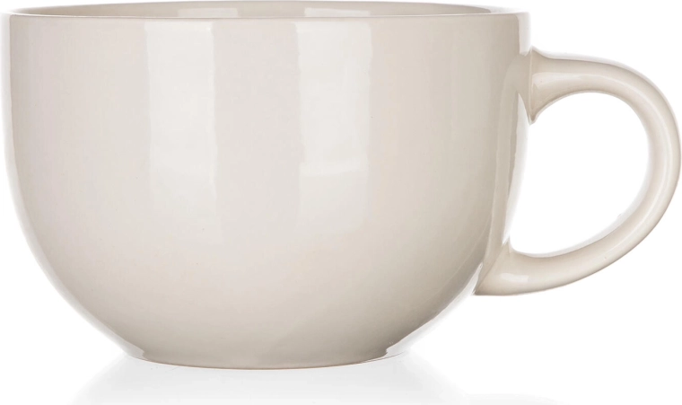 Grote keramische mok met een inhoud van 800 ml in een elegante ivoortint, ideaal voor liefhebbers van een flinke koffie, thee of cacao. Dankzij de brede opening en het stevig gevormde oor biedt hij comfortabele grip en veilig inschenken. Geschikt voor de vaatwasser en de magnetron, dus perfect voor dagelijks gebruik in de keuken.