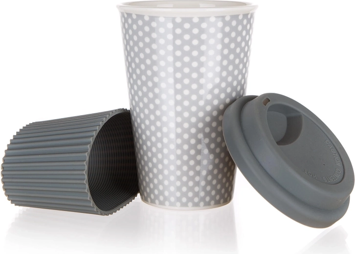 De beker is ontworpen voor dagelijks gebruik – hij is eenvoudig te onderhouden, kan in de vaatwasser en is geschikt voor gebruik in de magnetron. Het minimalistische grijze design met stippen past in kantoor, auto en huis en onderstreept je persoonlijke stijl.