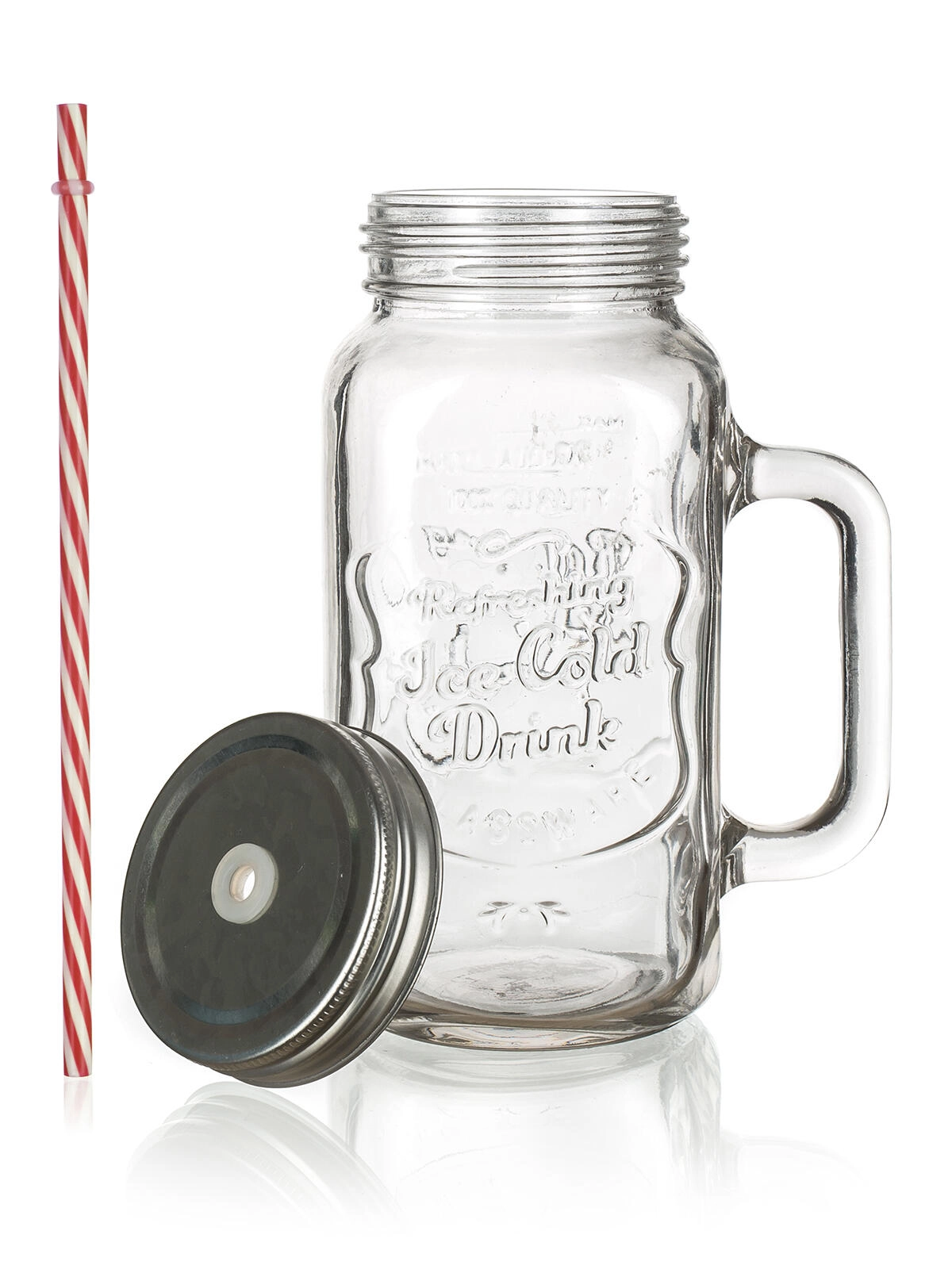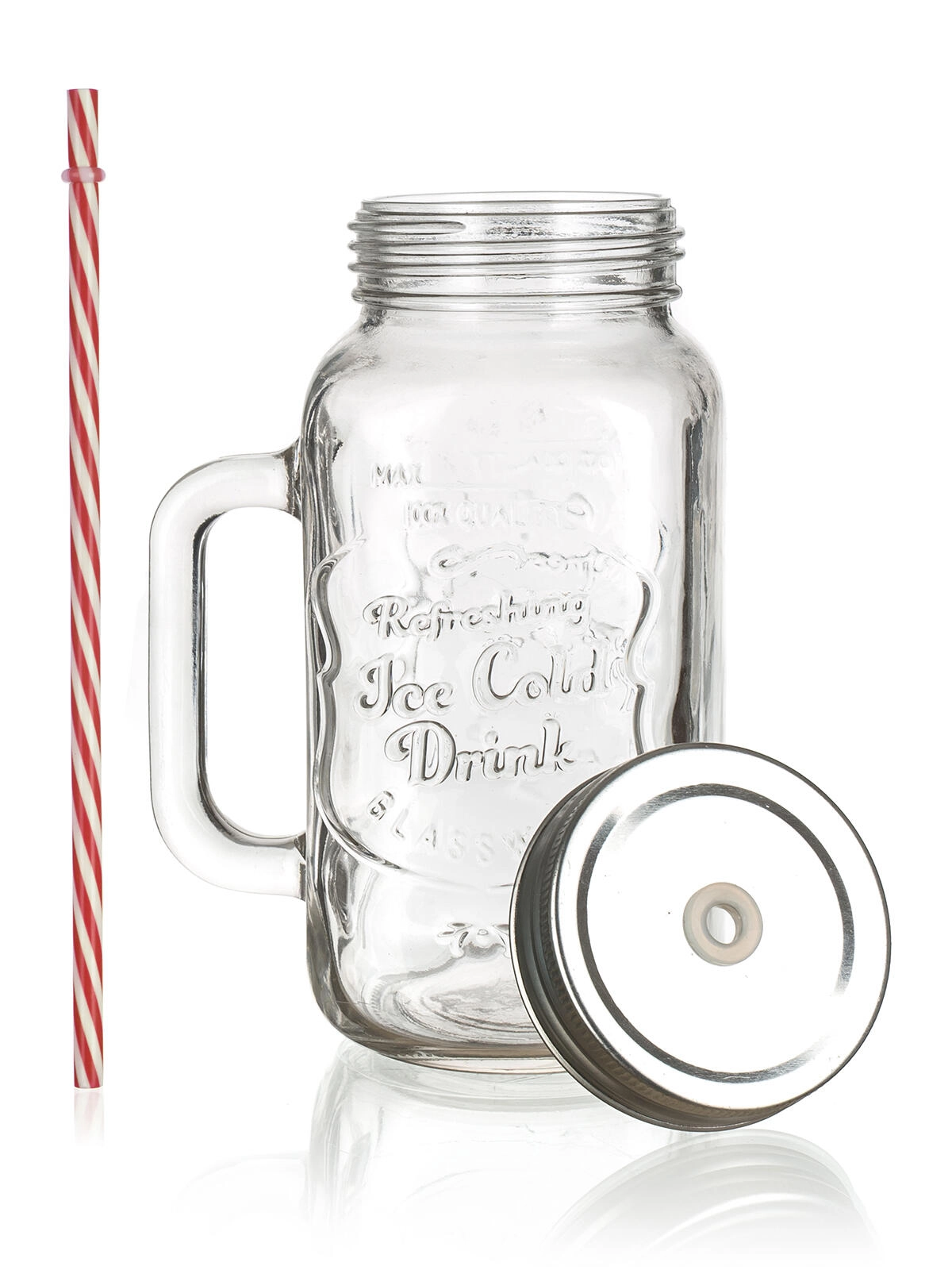 Stijlvolle glazen mok MADEIRA met een inhoud van 700 ml, voorzien van oor, een metalen schroefdeksel en een herbruikbaar rietje – ideaal voor zomerse drankjes. Geniet van je favoriete limonades, ijsthee en cocktails zonder morsen dankzij het deksel met rietjesopening en de comfortabele greep. Ruime inhoud van 700 ml, praktisch lekbeschermend deksel en een elegant design maken hem perfect voor tuinfeesten, zomerse party’s en bruiloften.