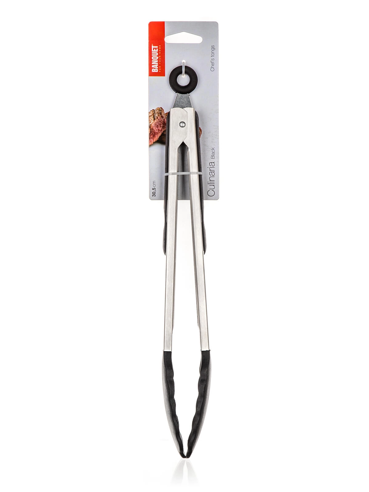 De praktische ring aan de bovenzijde dient als vergrendeling/lock om de tang gesloten te houden en tevens als ophangoog. Dankzij de ergonomische grepen werk je comfortabel, ook bij langer koken.