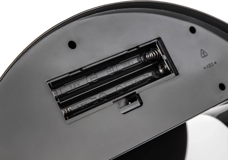 Ronde behuizing van rvs met zwarte lak en duurzame kunststof elementen is eenvoudig te reinigen en past perfect in moderne interieurs.