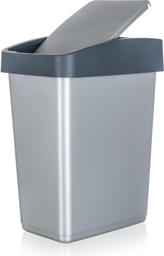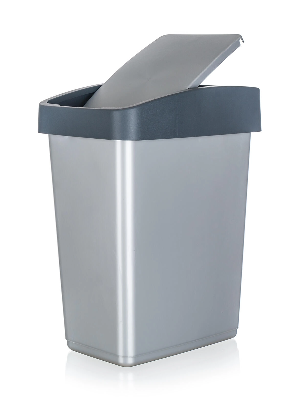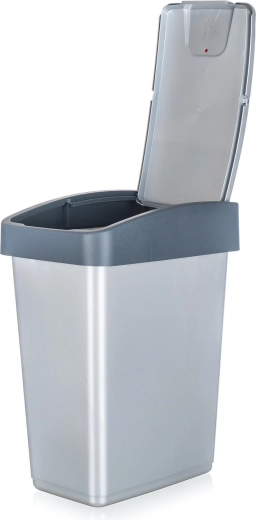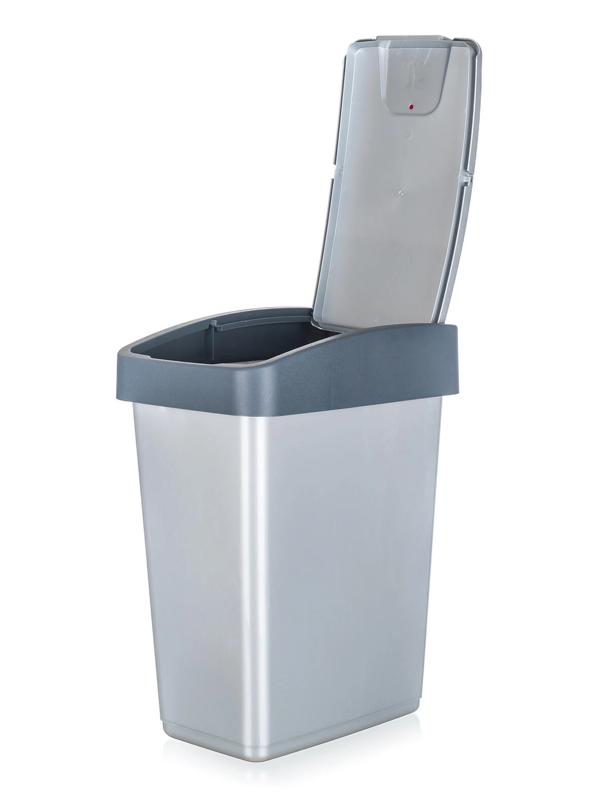 Universele vuilnisbak met een inhoud van 25 liter, ontworpen voor dagelijks gebruik. Dankzij de rechthoekige vorm sluit hij goed aan tegen muren en in hoeken, waardoor hij ruimte bespaart, terwijl het tweestandendeksel zorgt voor comfortabel gebruik naar behoefte.