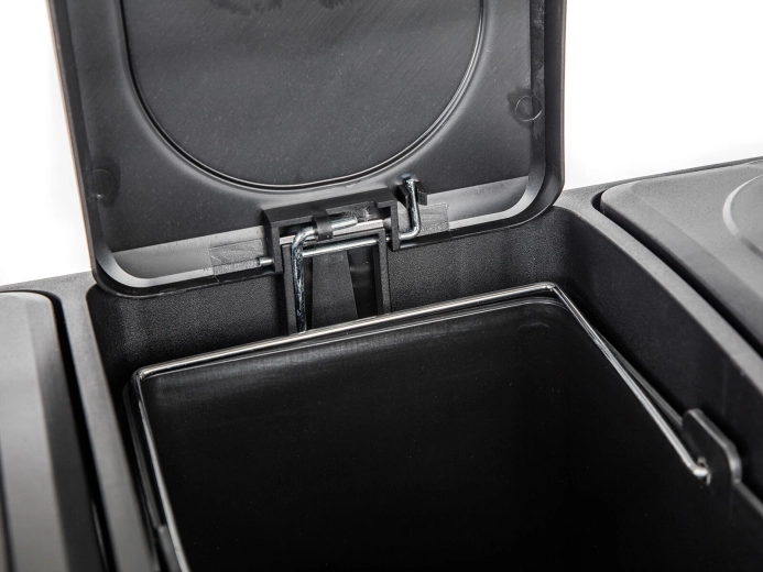 Elke 20 l bak is uitneembaar en voorzien van een handgreep. Het vervangen van zakken en reinigen is snel en comfortabel.