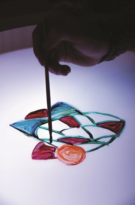 Het duurzame plexiglas maakt diverse teken- en creatietechnieken mogelijk – van vingerverf tot werken met hulpmiddelen en vormen.