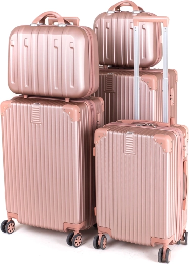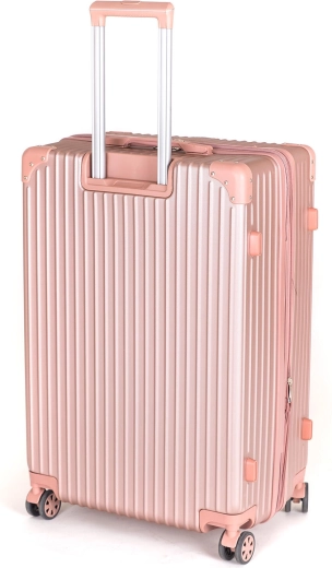 Deze ruime reiskoffer combineert stijl en functionaliteit. De harde ABS-schaal met versterkte hoeken beschermt je spullen betrouwbaar, terwijl de telescoopgreep met vergrendeling en 4 dubbele zwenkwielen een soepele en stabiele beweging in elke richting garanderen. De roze metallic afwerking geeft je reis extra flair.